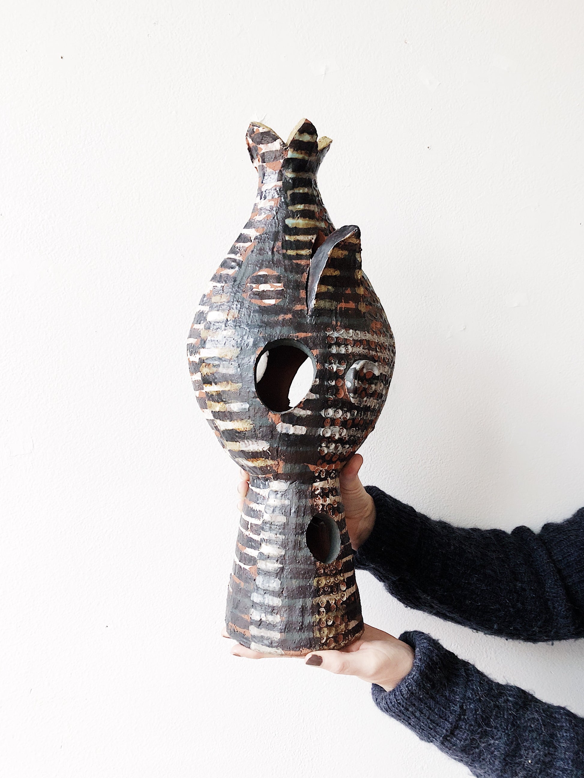 Stunning original sculpture in the Brutalist style. Black , grey , cream and terra cotta. Such a cool piece!