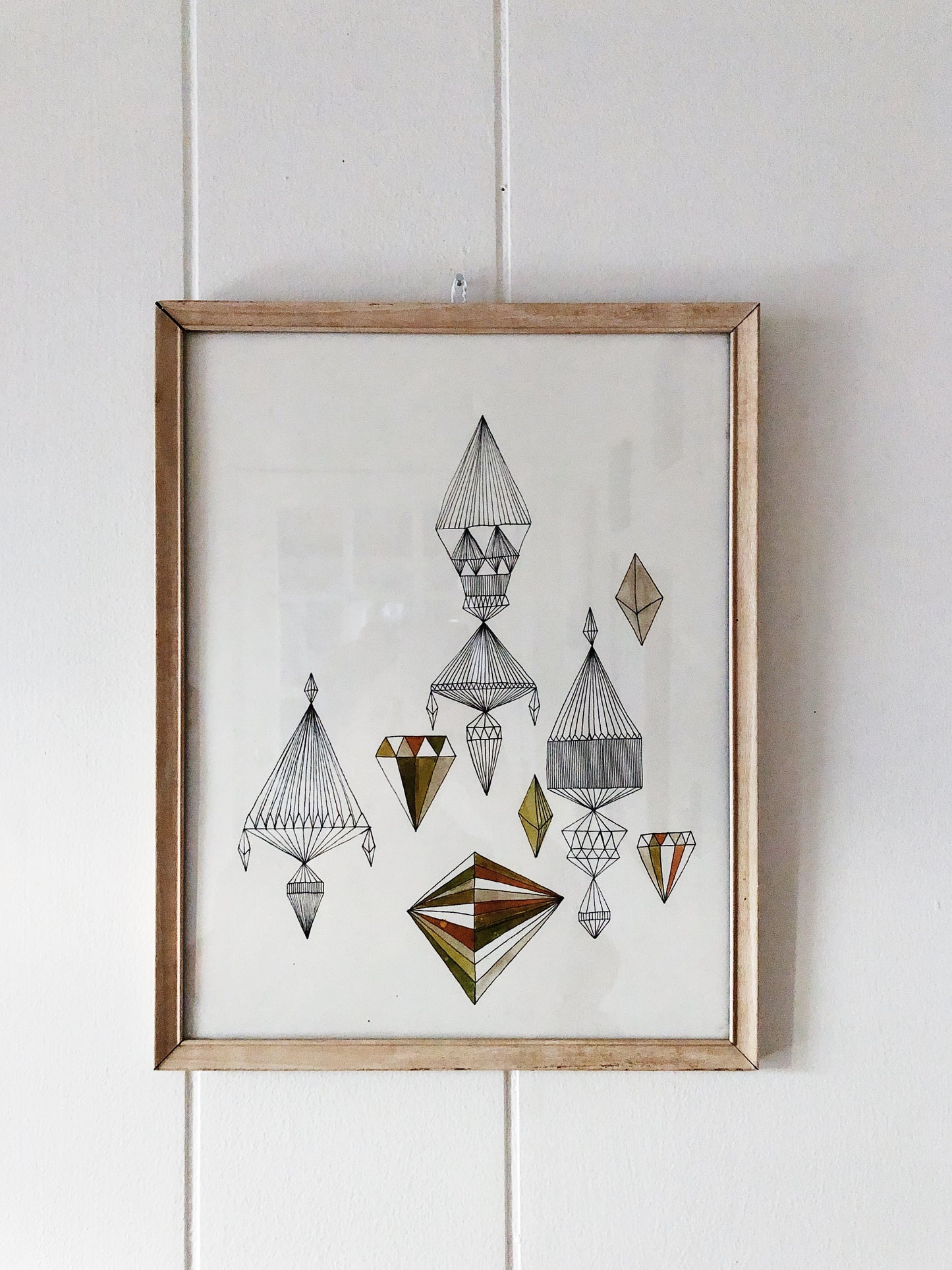 Mixed Media (pen and ink and watercolor) abstract original from artist Christopher Bettig. Framed in simple glass and wood look metal
