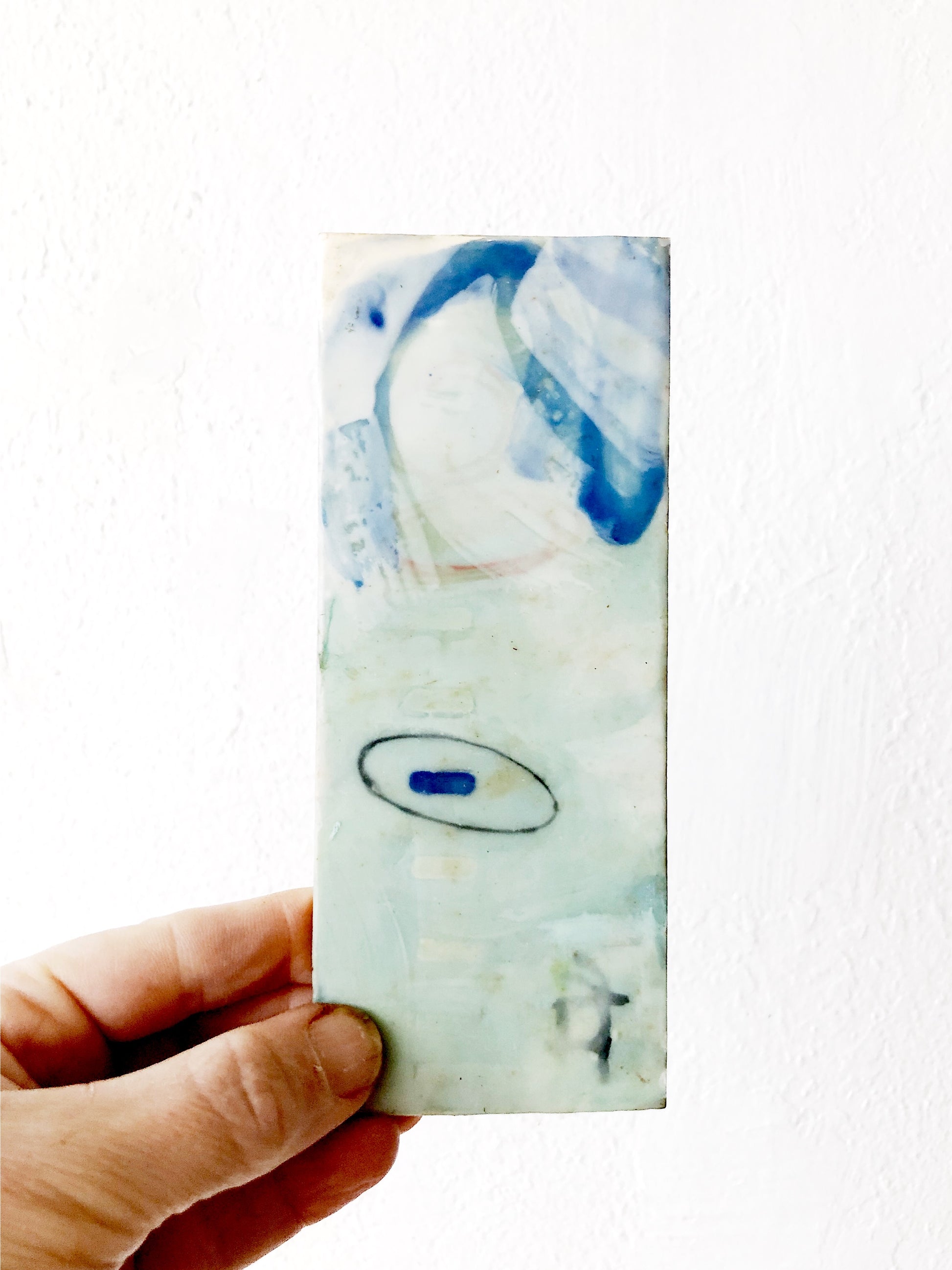 Petite abstract done in the encaustic style. On wood panel. Signed by the artist Patti Bowman