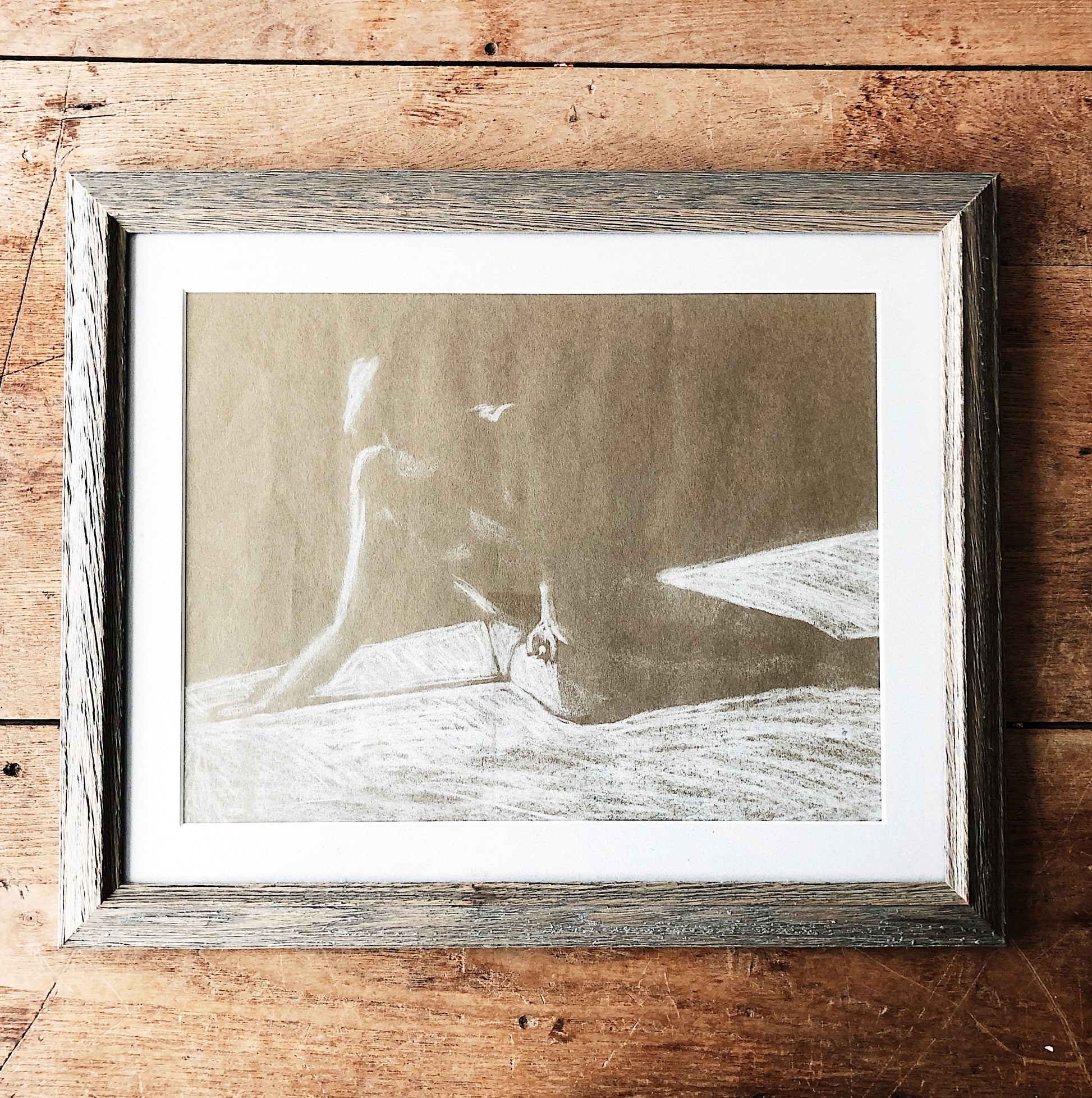 Beautiful sublime original drawing /pastel. On brown paper. Lovely frame under glass
