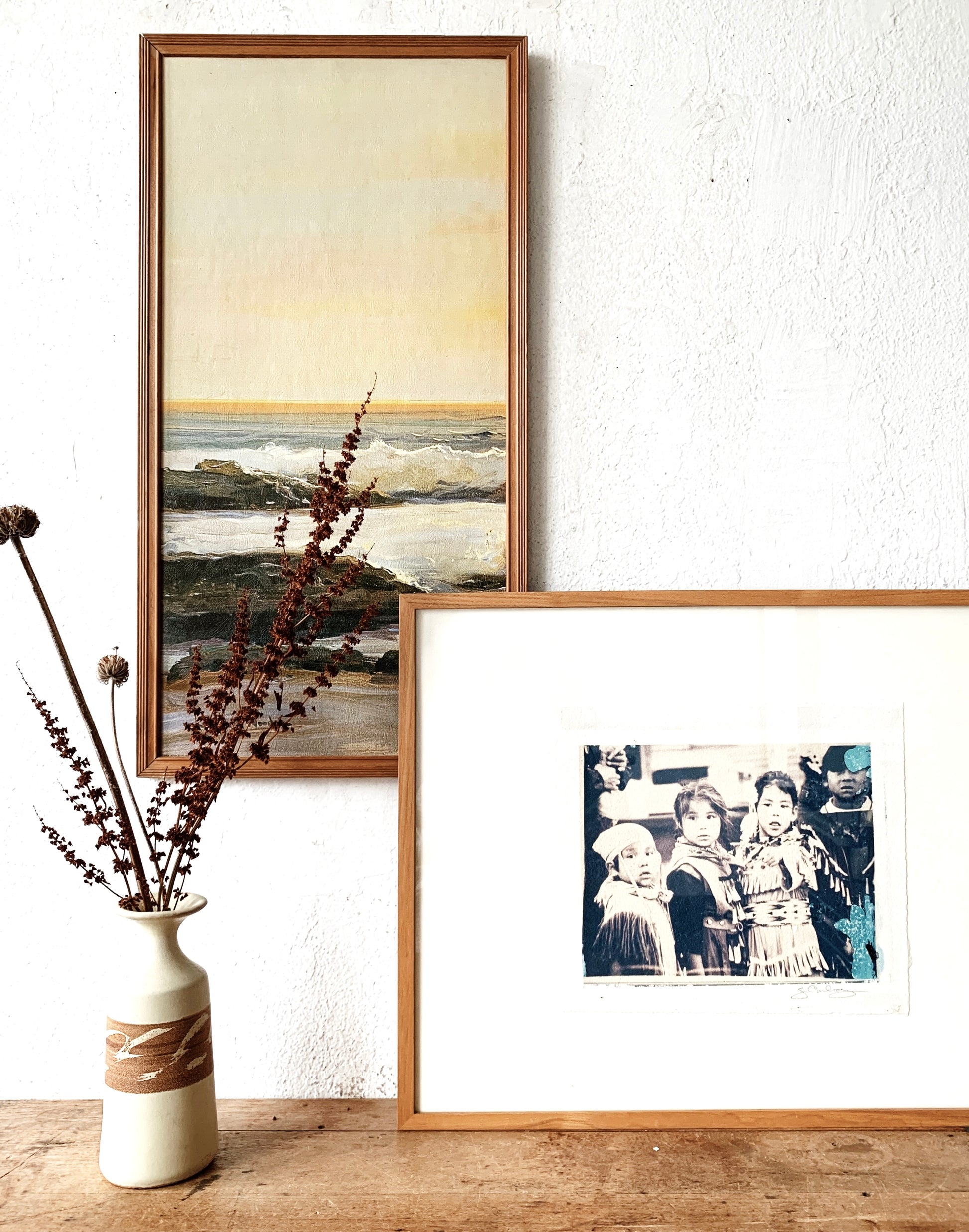 Wonderful original screenprint of a photograph. Signed, framed in wood under glass. Love the blue ink leak on the right.