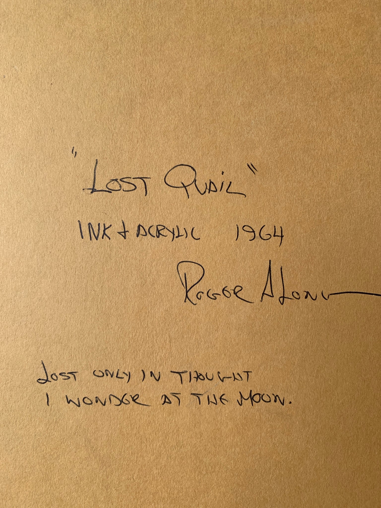 Original ink + acrylic abstract framed art piece by Oregon artist Roger A.Long. Love the words on the back, ‘lost only in thought I wonder at the moon’