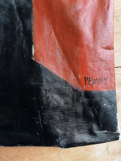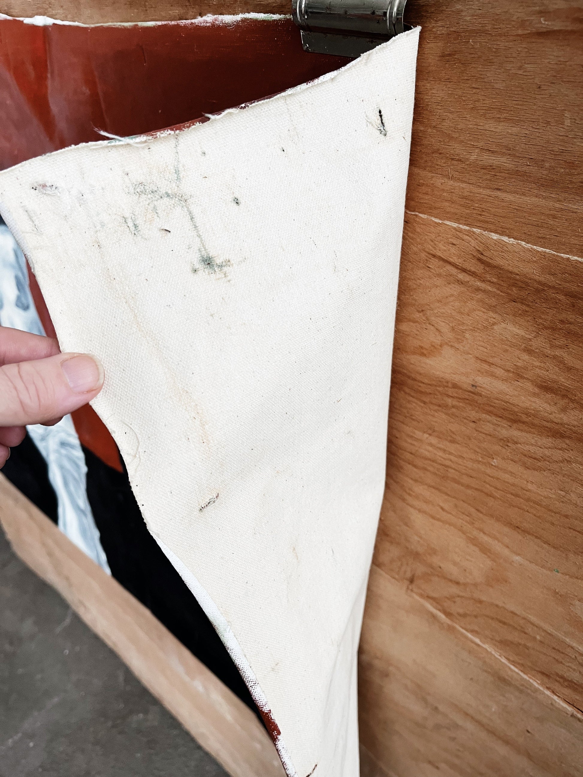 Original oil painting mural on linen. Unstretched and shown here pinned to a salvaged piece of wood. Can also be hung on a wall as shown or framed by you.