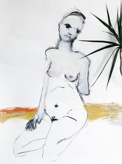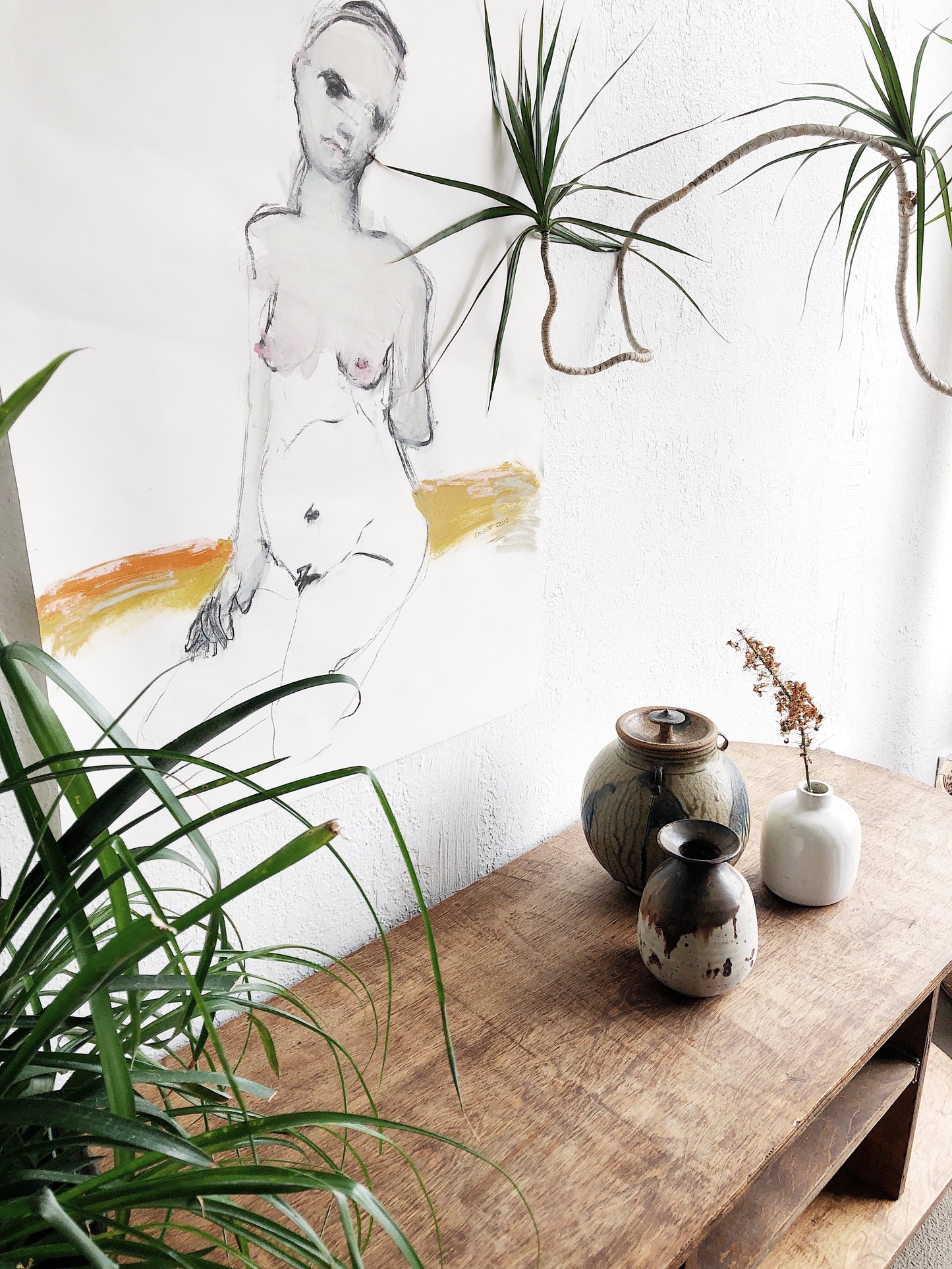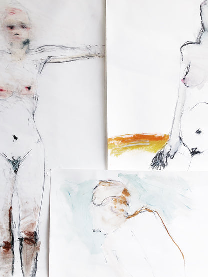 Beautiful mixed medium paintings (line drawing and paint). Love the motion and use of color. These are very large and on art paper, ready for framing or tape them up as we did here
