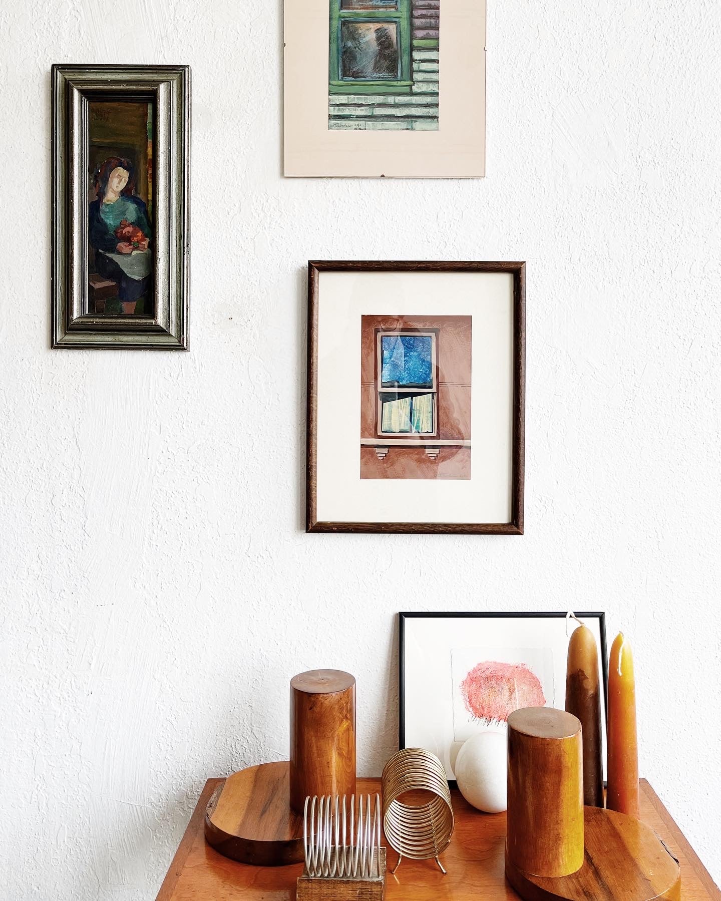 Charming original portrait painting. Oil on canvas board. Framed in thick vintage wood. Signed but hard to make out signature