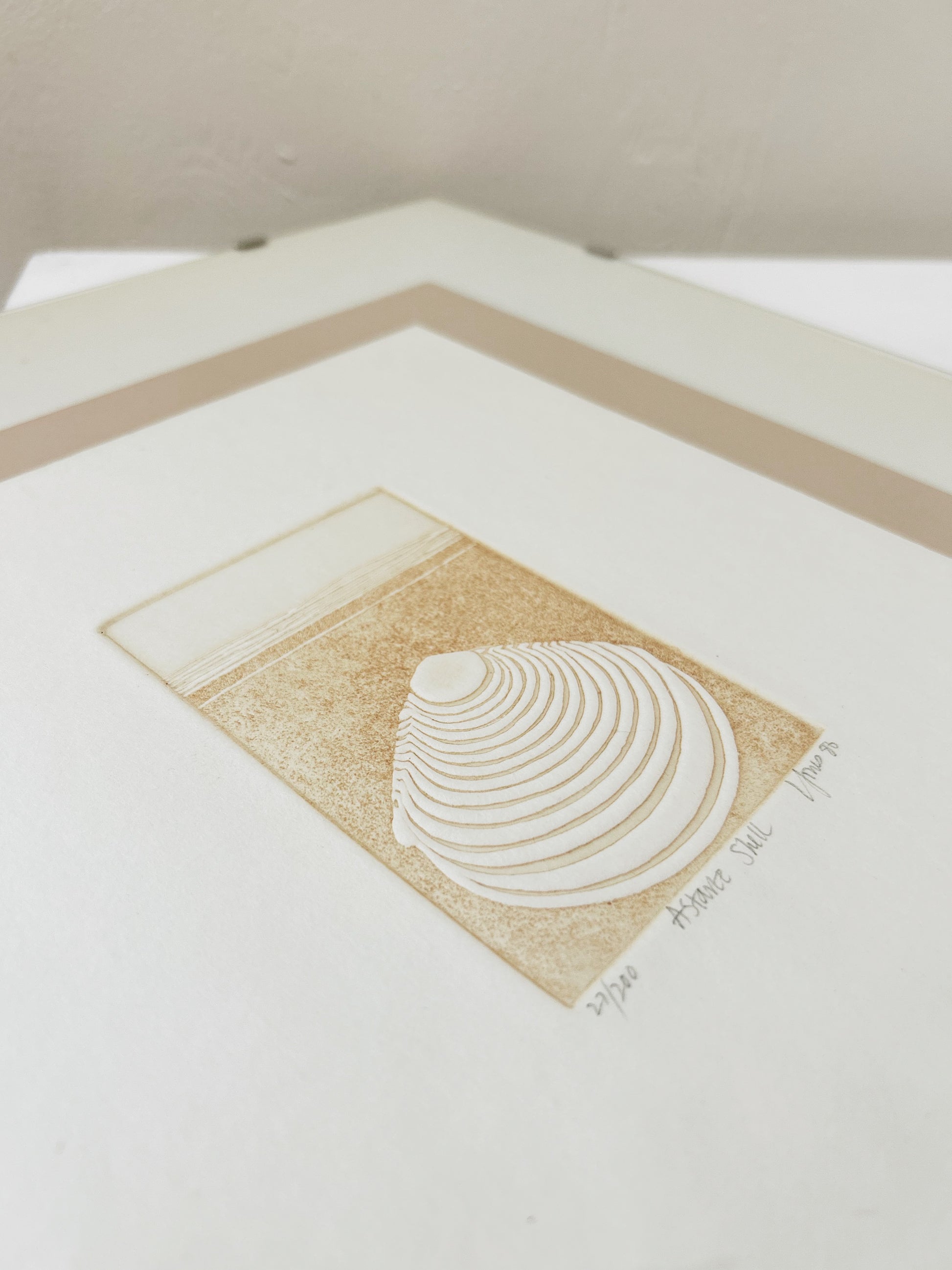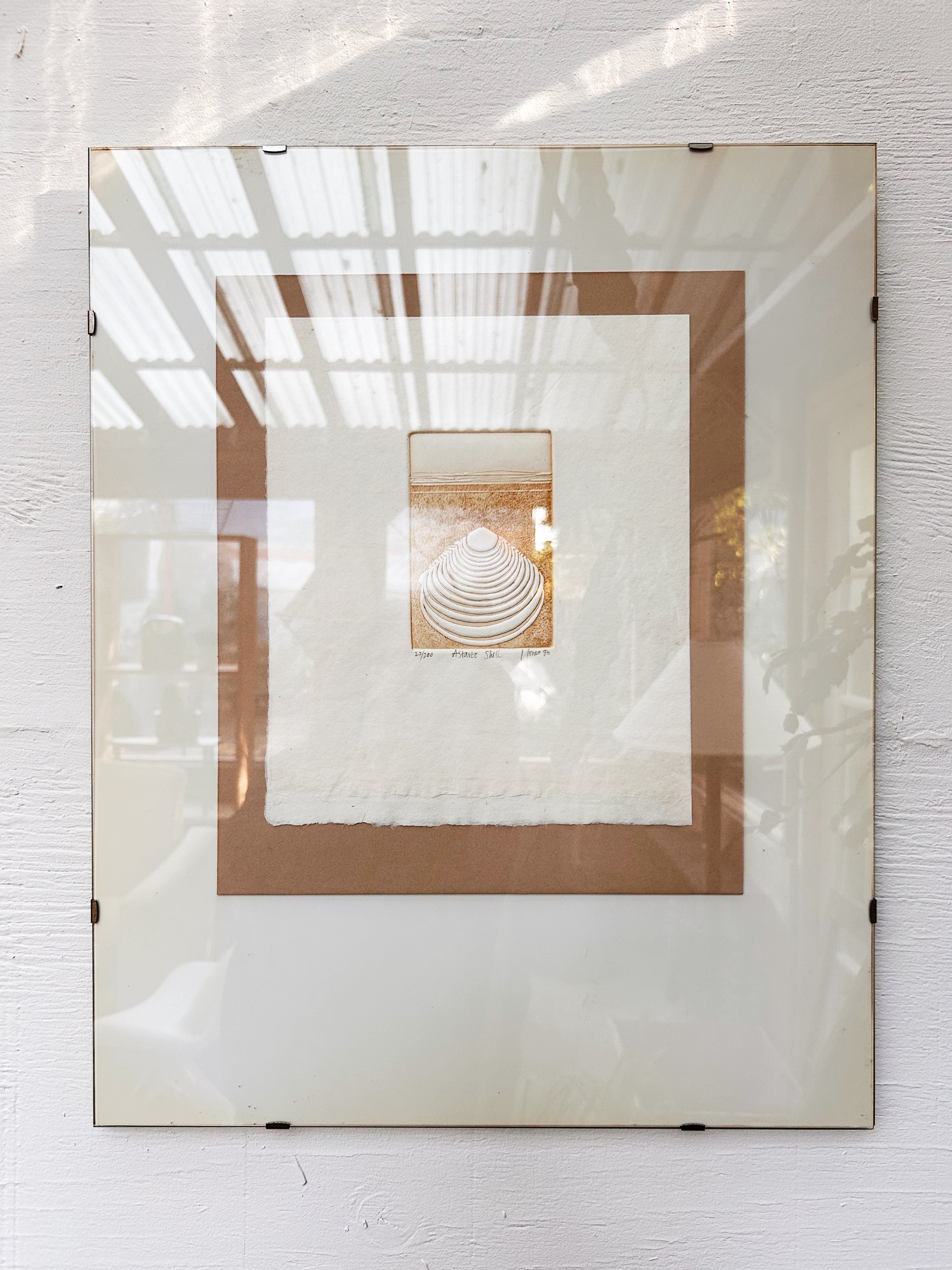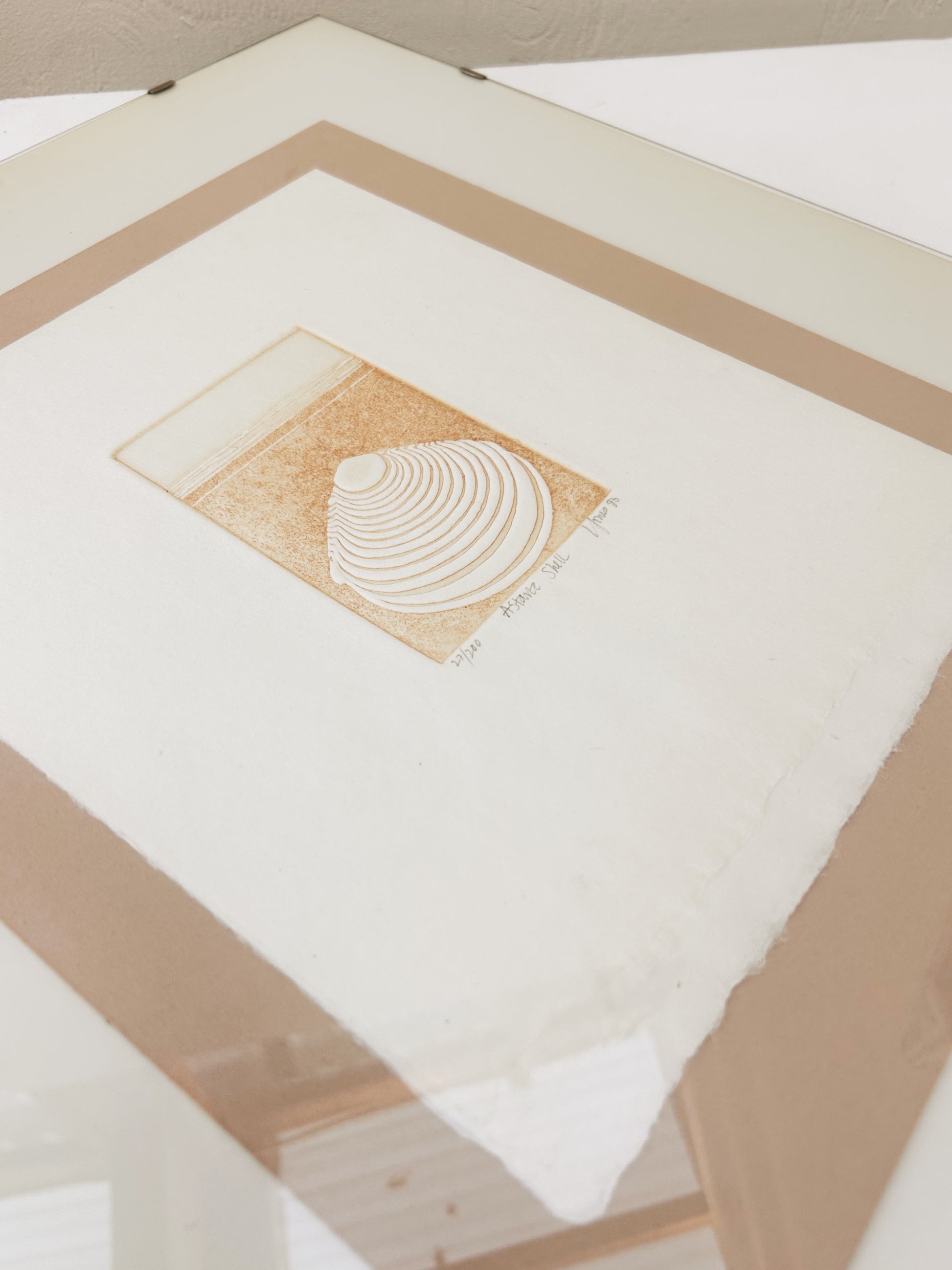 Lovely original engraving of a shell. Plate lines are well defined. Handmade paper. Framed simply under glass. Signed numbered and dated '86