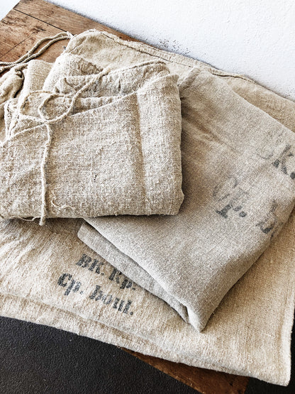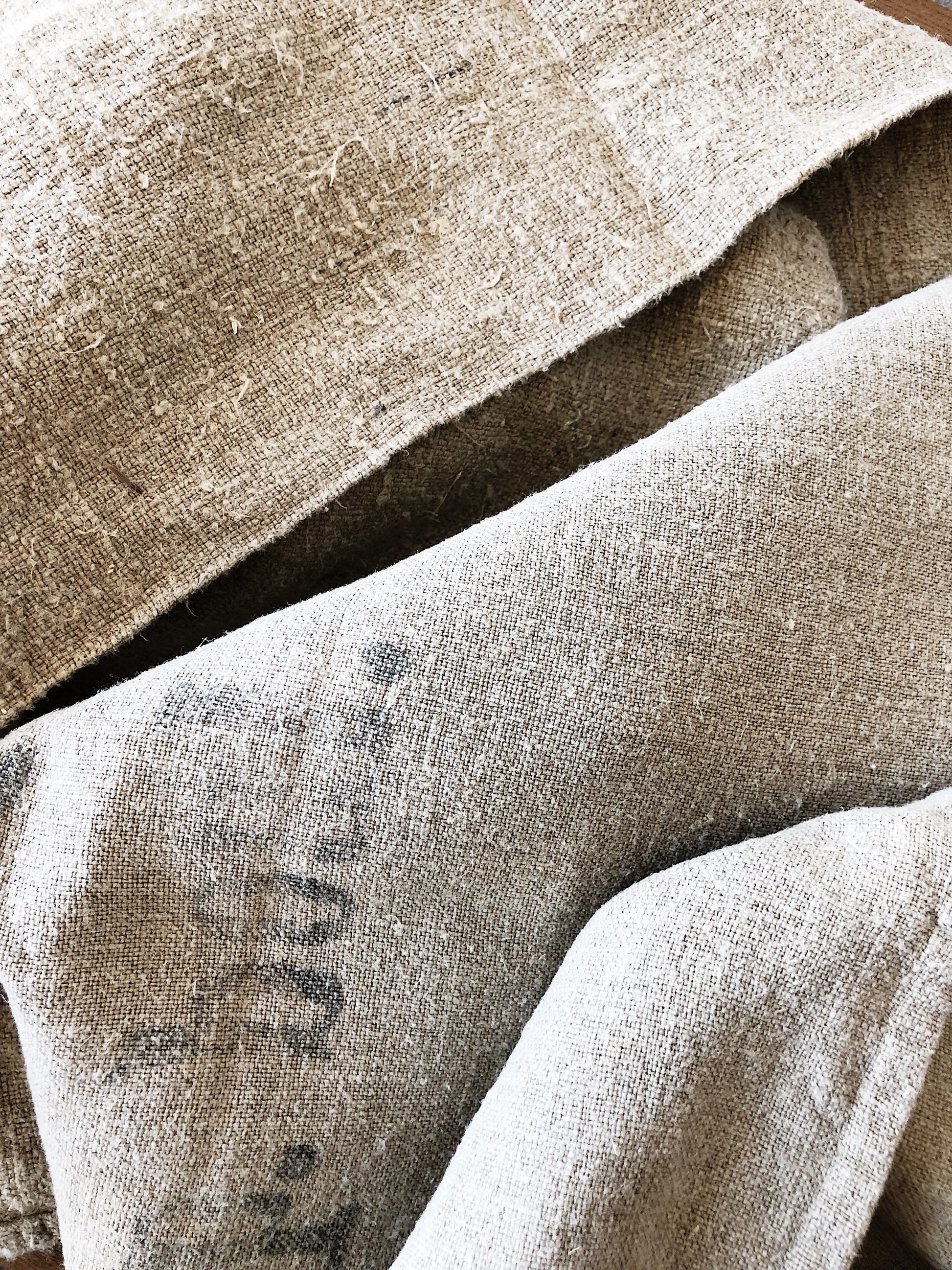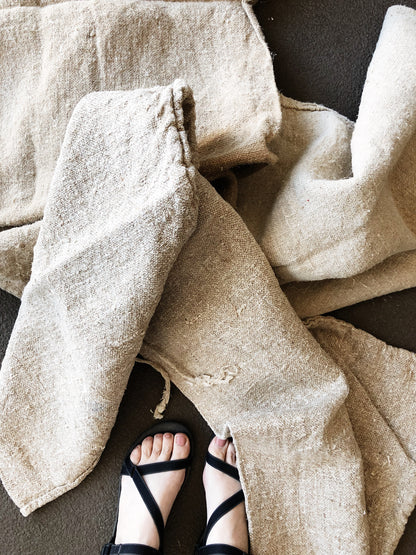 Fabulous texture and neutral color to this giant grain sack. These are a great alternative to upholstery fabric, easy to slip large body pillows or down fillers inside (ikeas are inexpensive) to make cushions for daybeds, couches, outdoor furniture