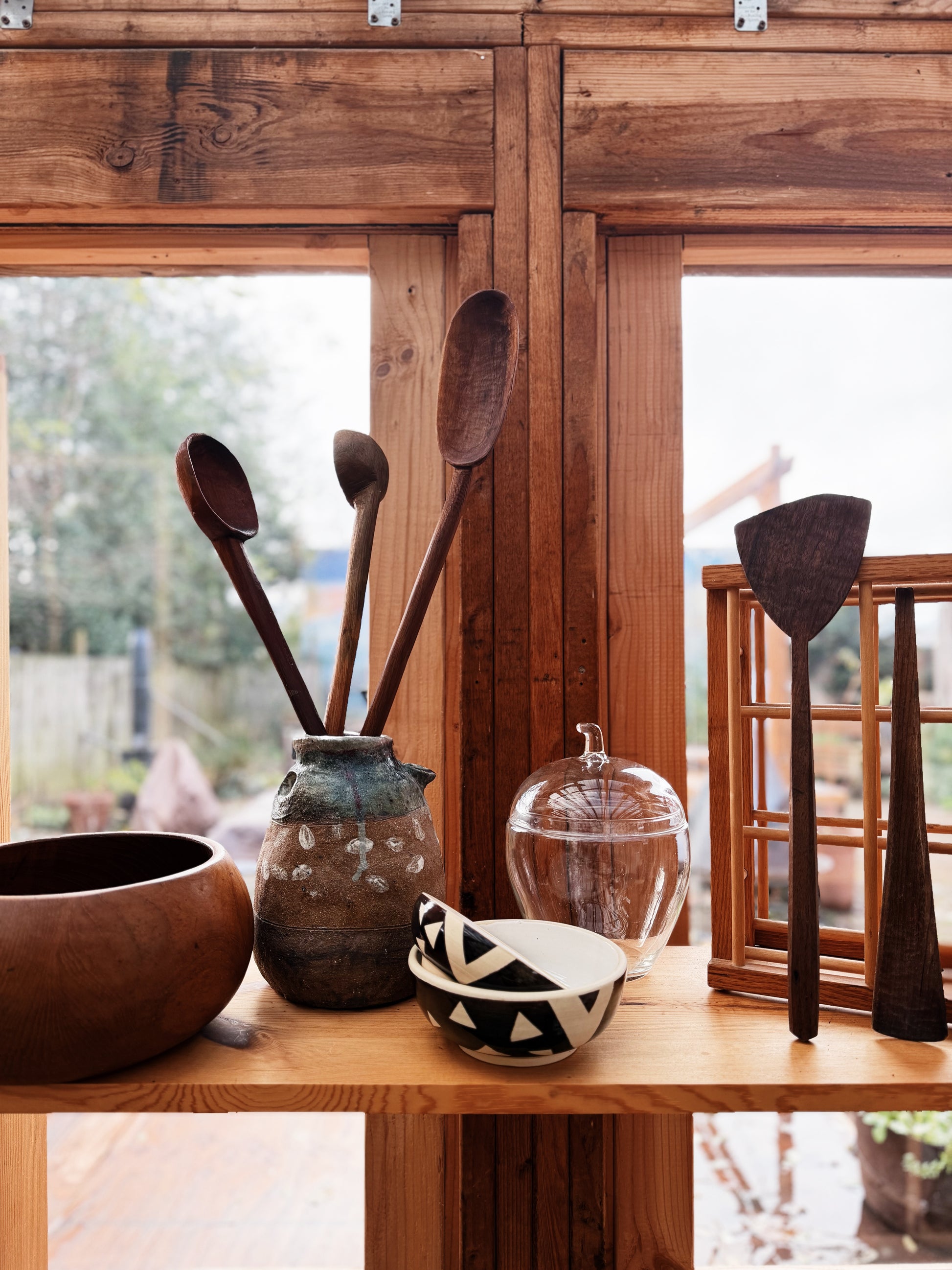 Nice hand thrown set of nesting bowls. Deep brown glaze offset by geometric areas of negative space. Stoneware