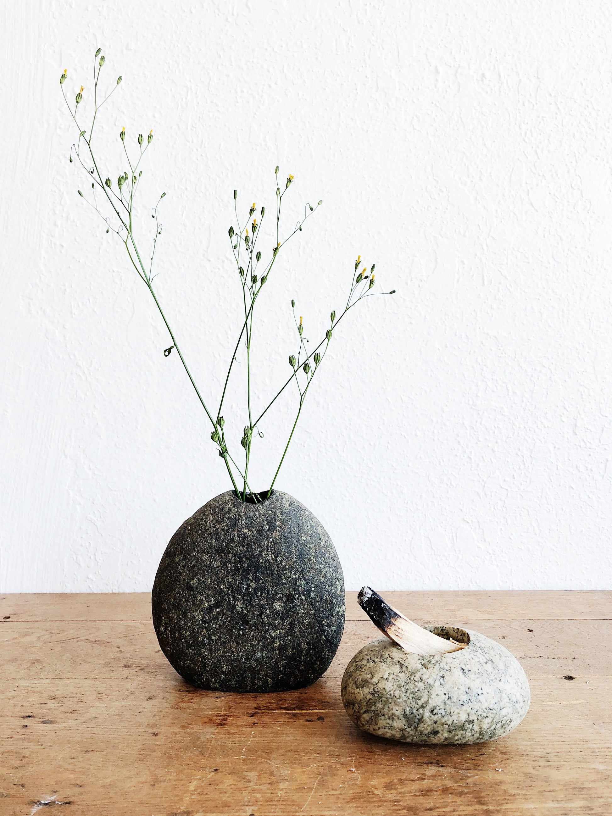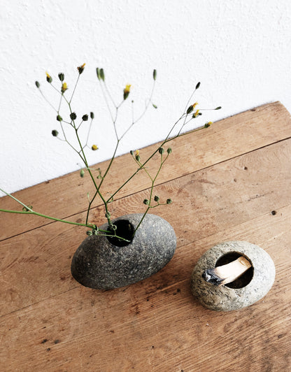 Nice pair of river rock vessels. One is a vase and the other is perfect for incense or palo santo. Heavy...as rocks are apt to be