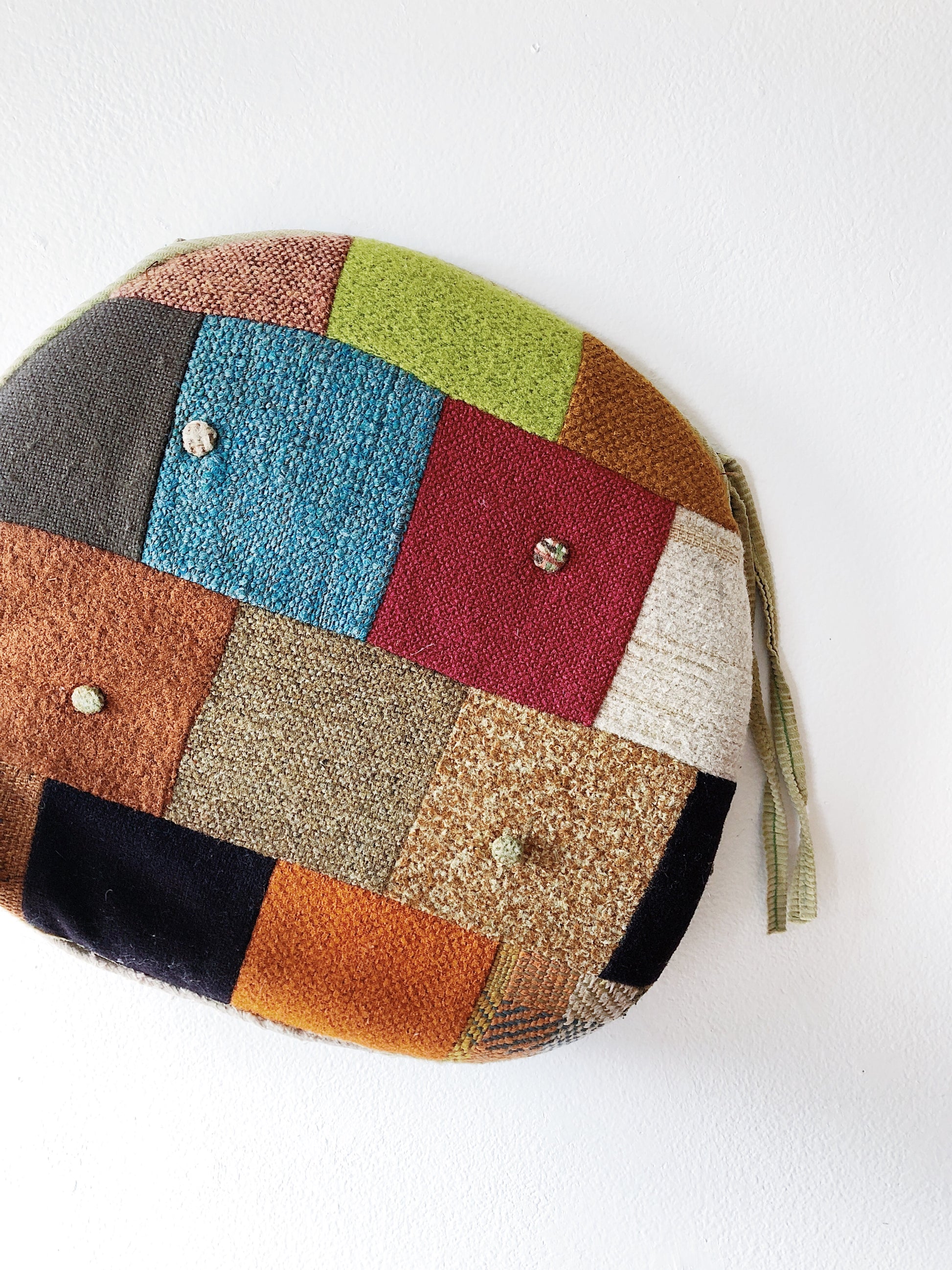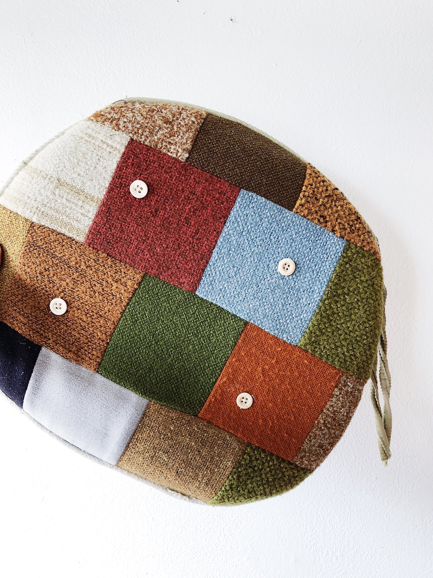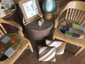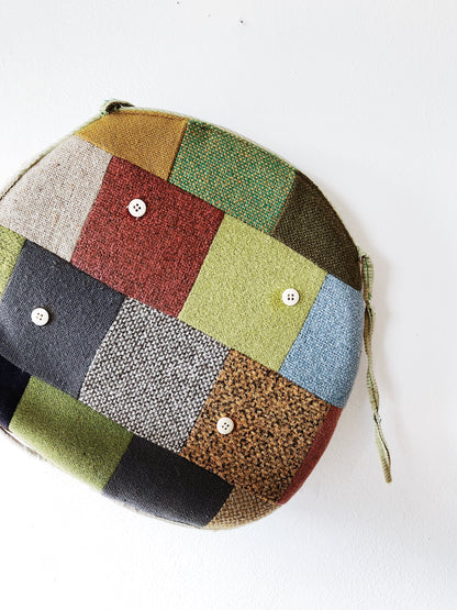 Sweet pair of 1970s patchwork seat cushions. The colors are just perfect. Reverses.