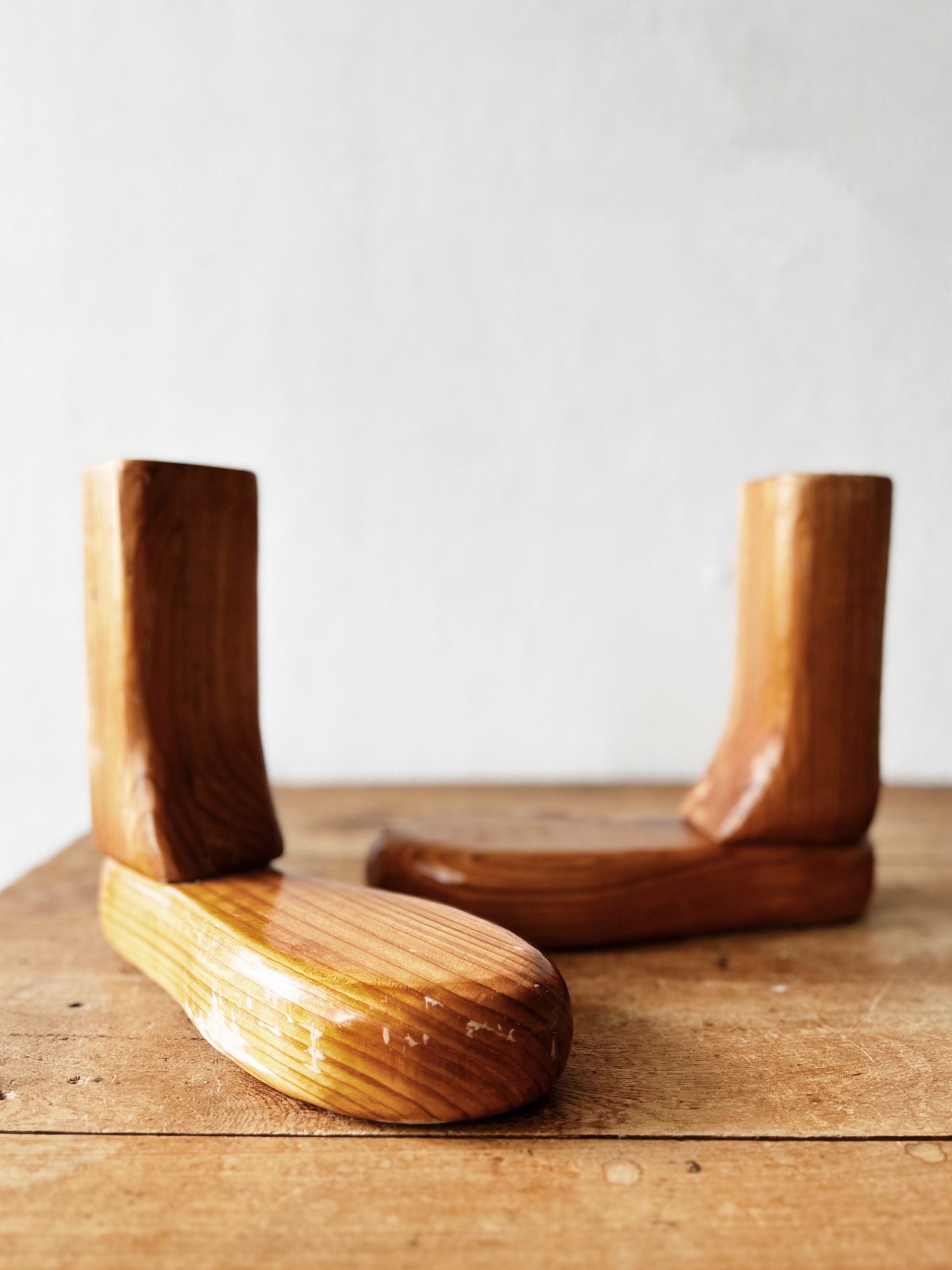 Pair of oversized wooden feet, handmade. Quirky and whimsical