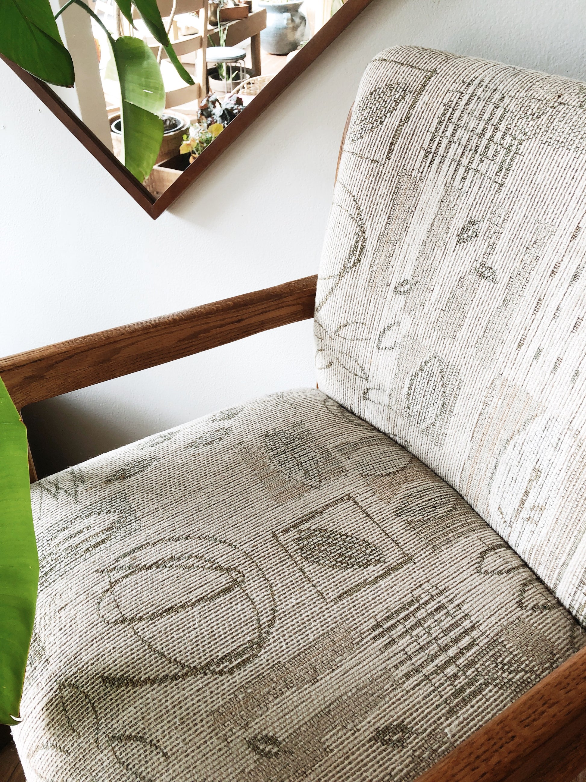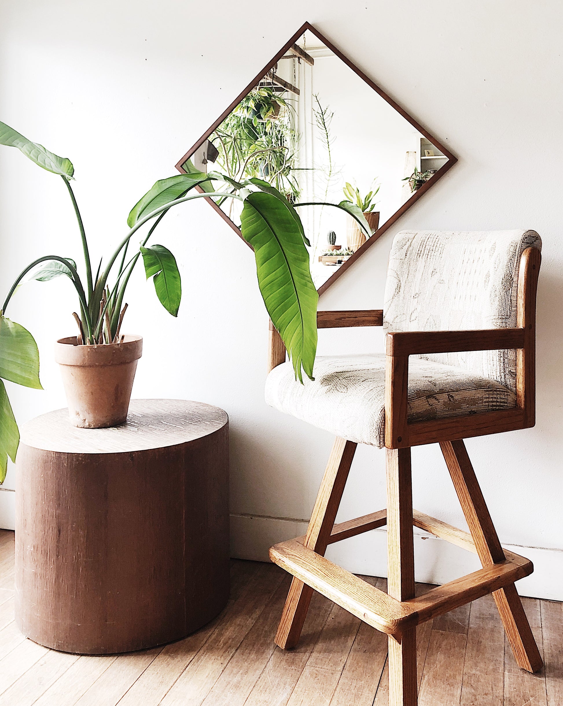 A pair of cushy comfy vintage bar stools. Blocky oak bases and a soft swivel seat. Upholstery is in great condition