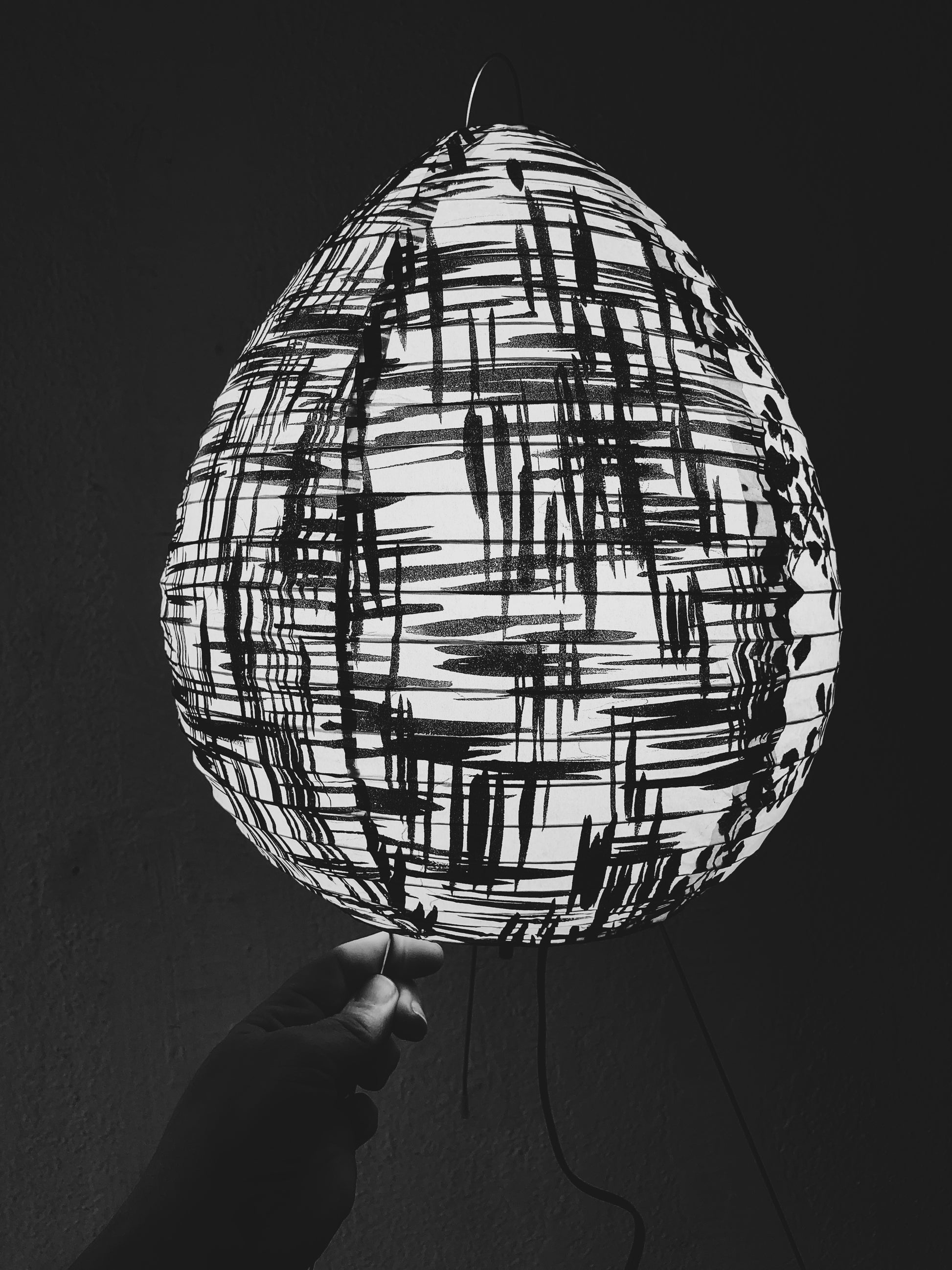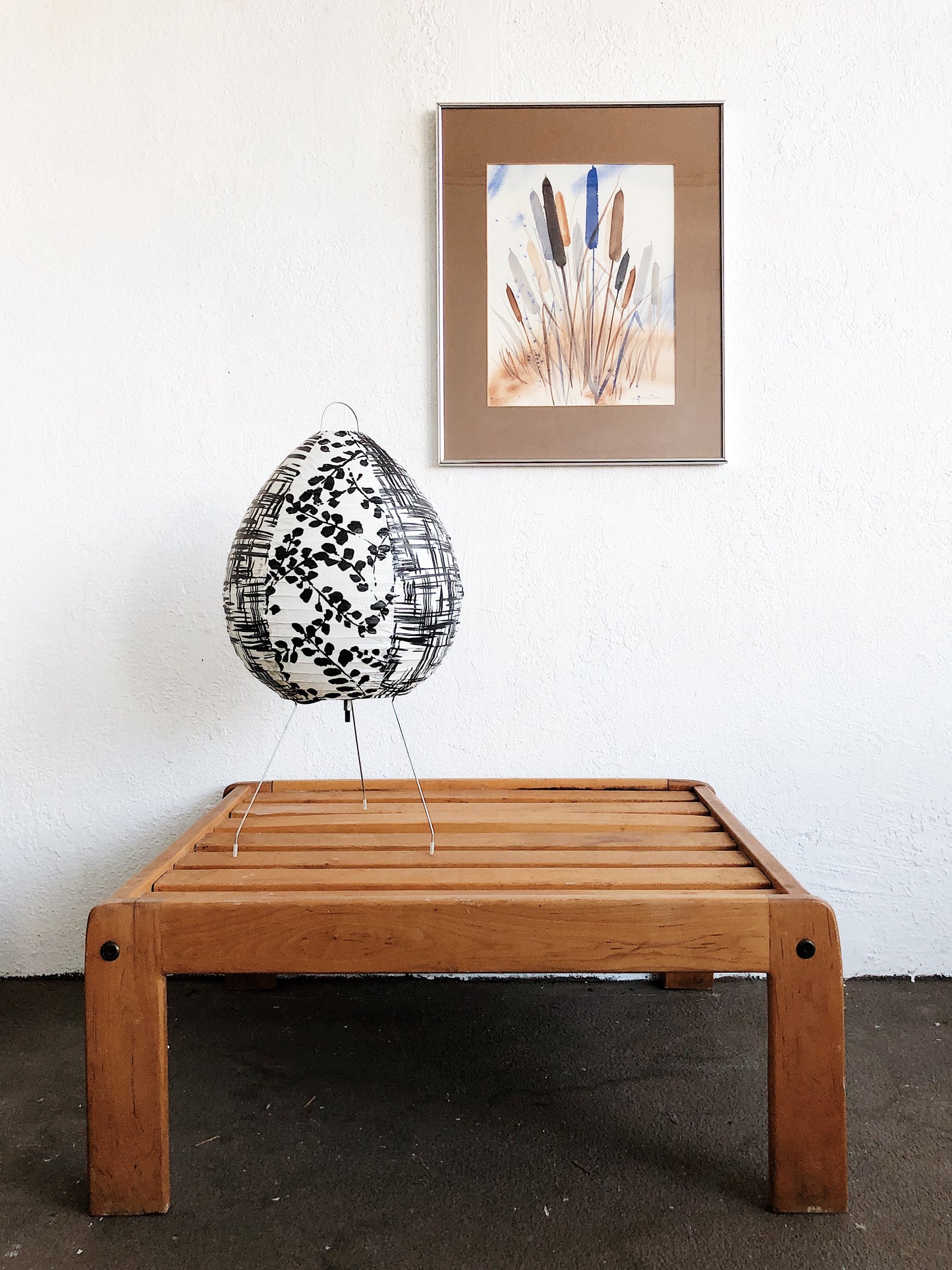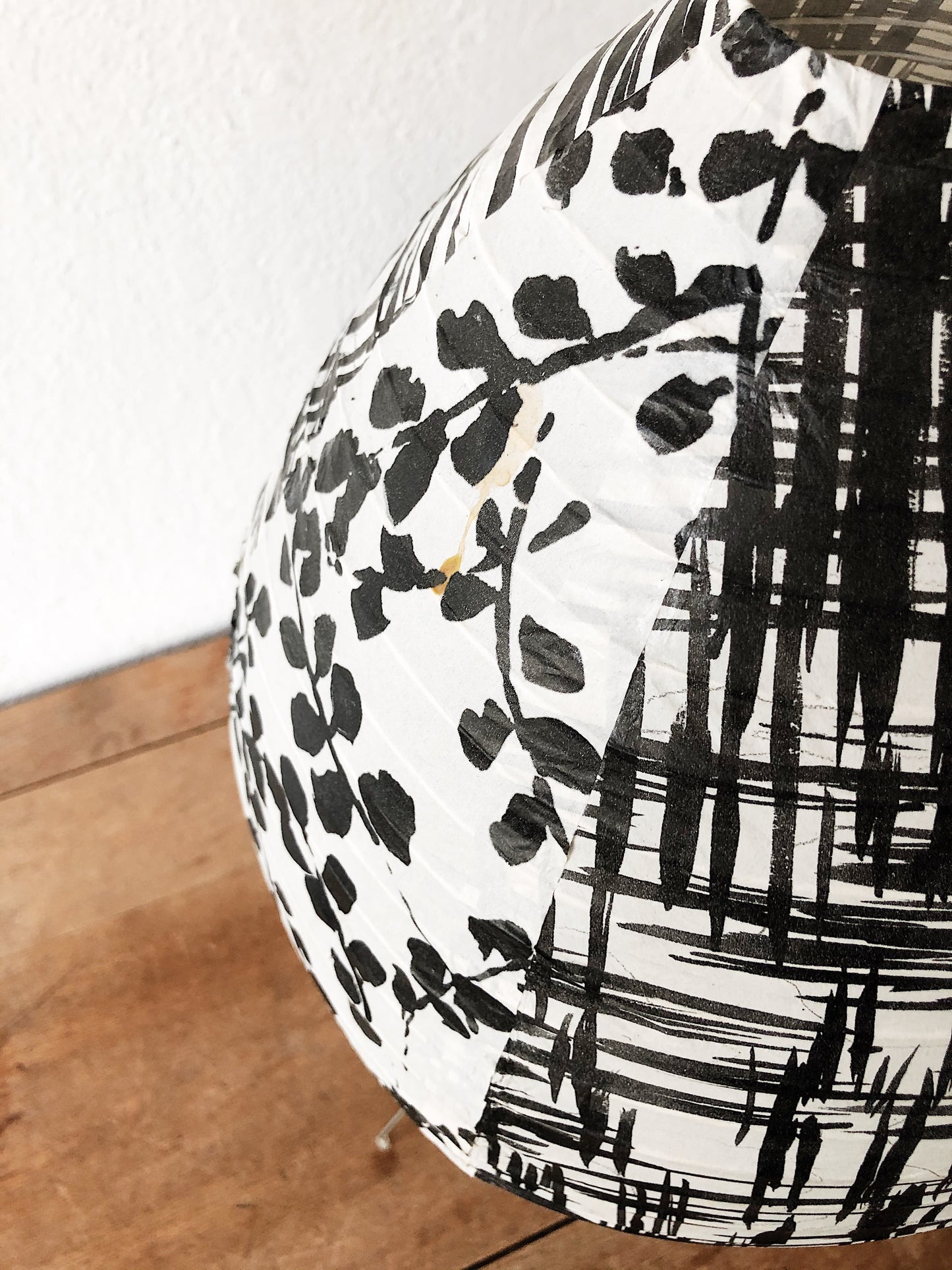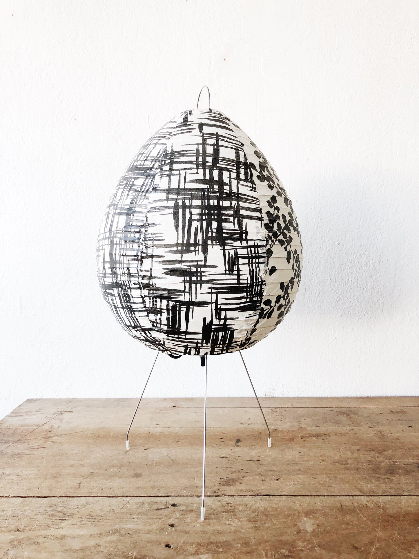 Modern paper lantern lamp with a great look. Tripod stand. No breaks in the paper.