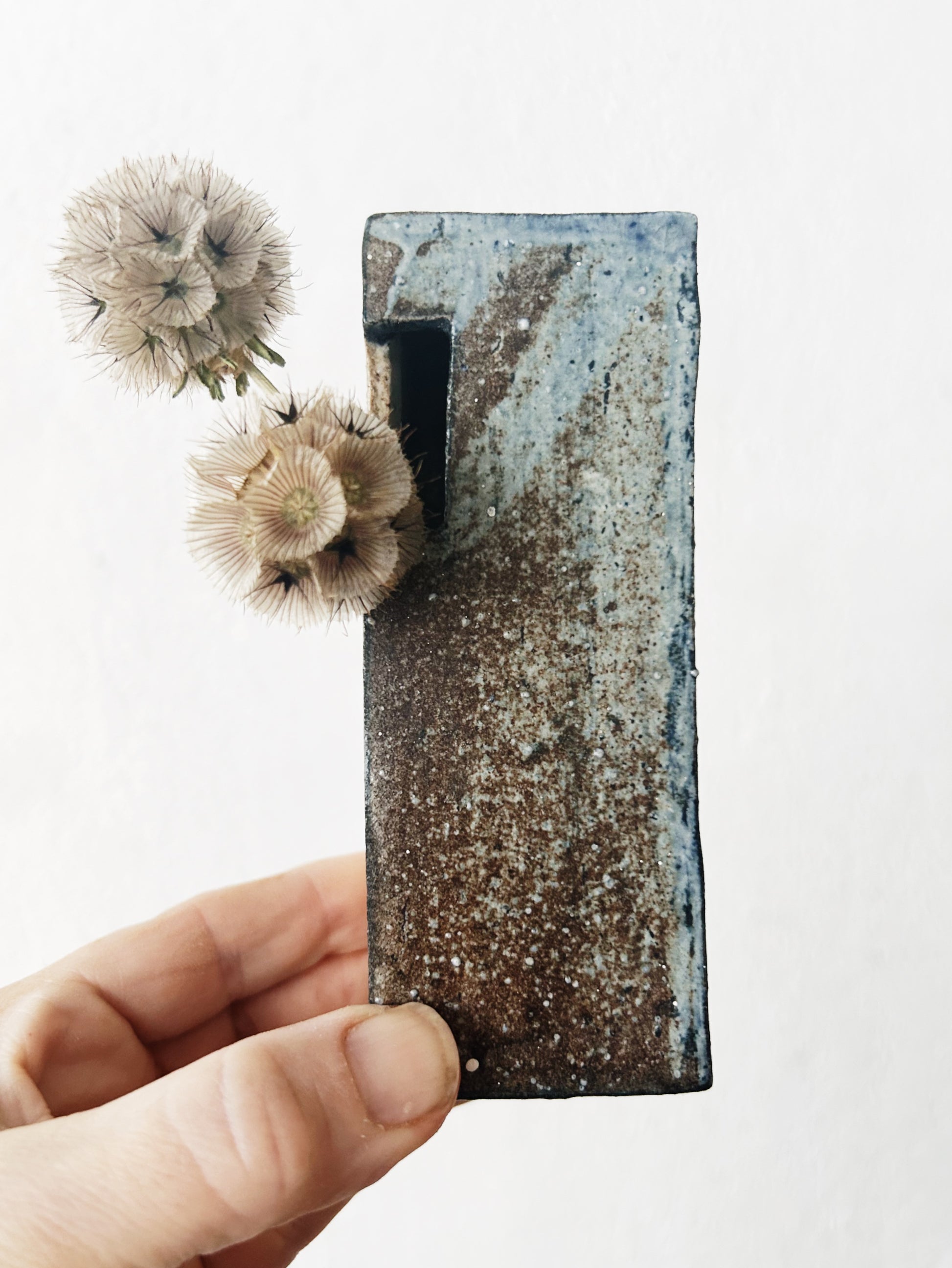 Really lovely ceramic ikebana vase/vessel. Abstract form with slit opening. Hold water nicely.