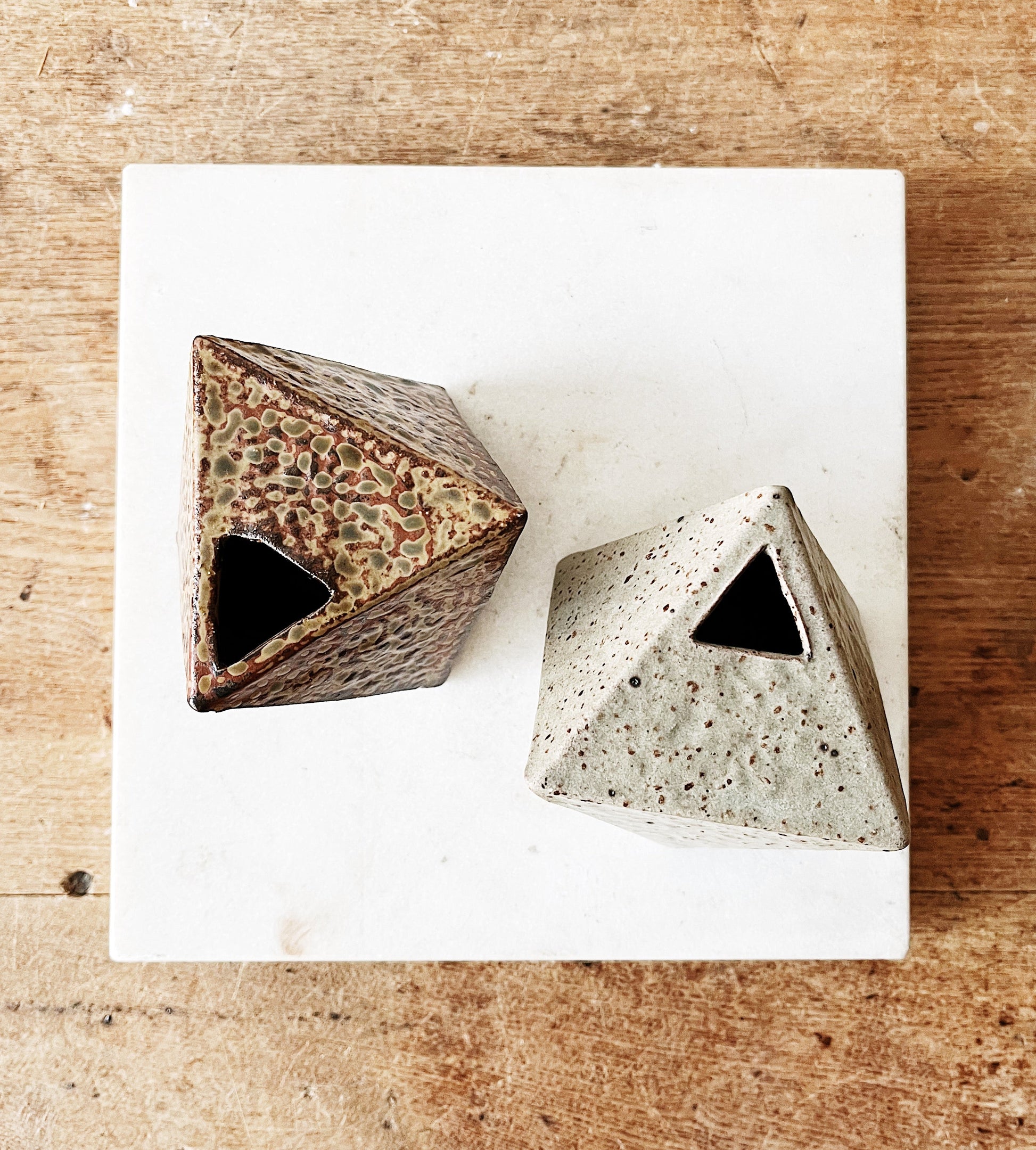 Delicate Japanese ceramic vase in a geo/origami shape. Lovely addition to a collection of modern pottery. Holds water.