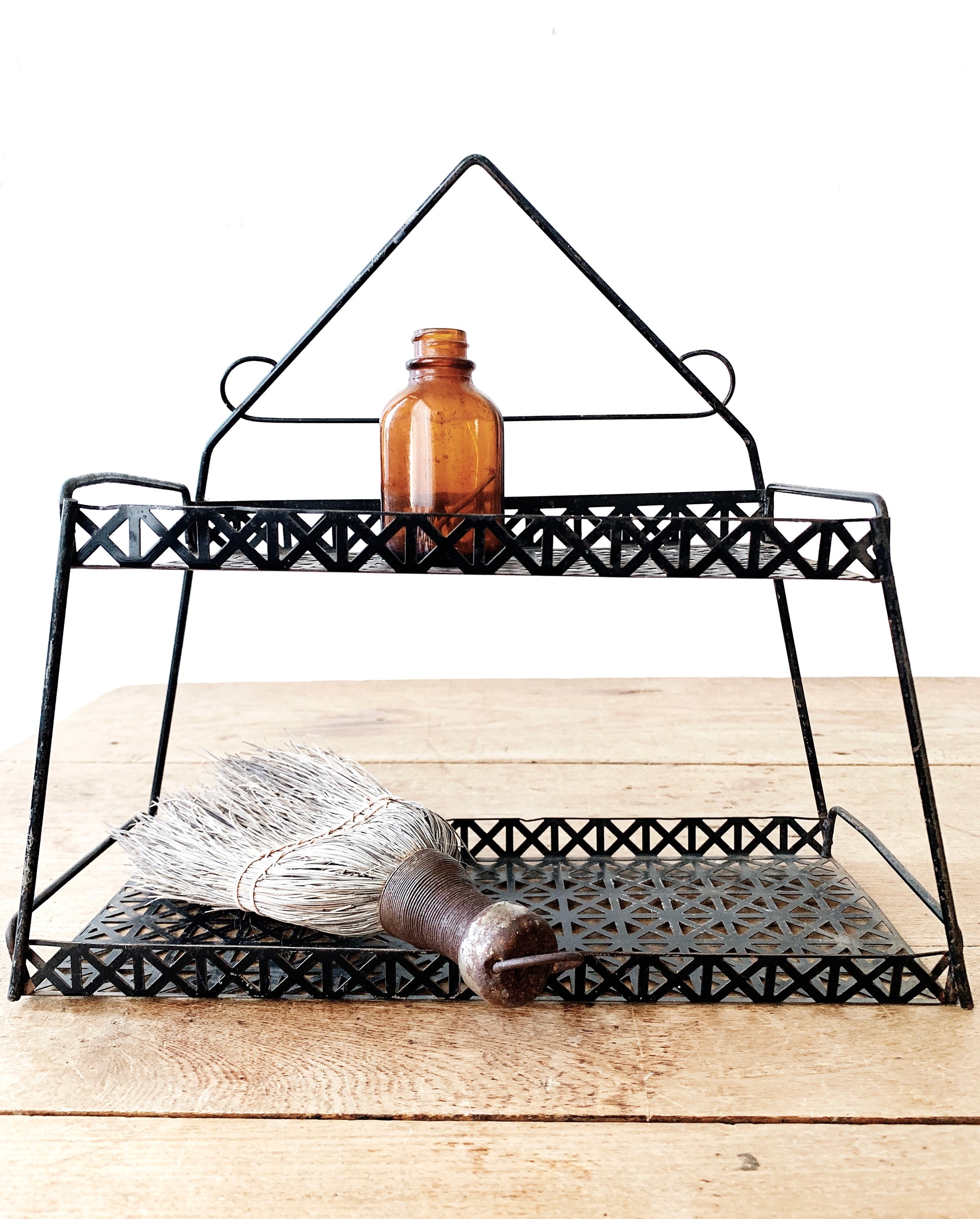Classic mid century mid wire hanging or sitting shelf. Great in the bathroom or kitchen!