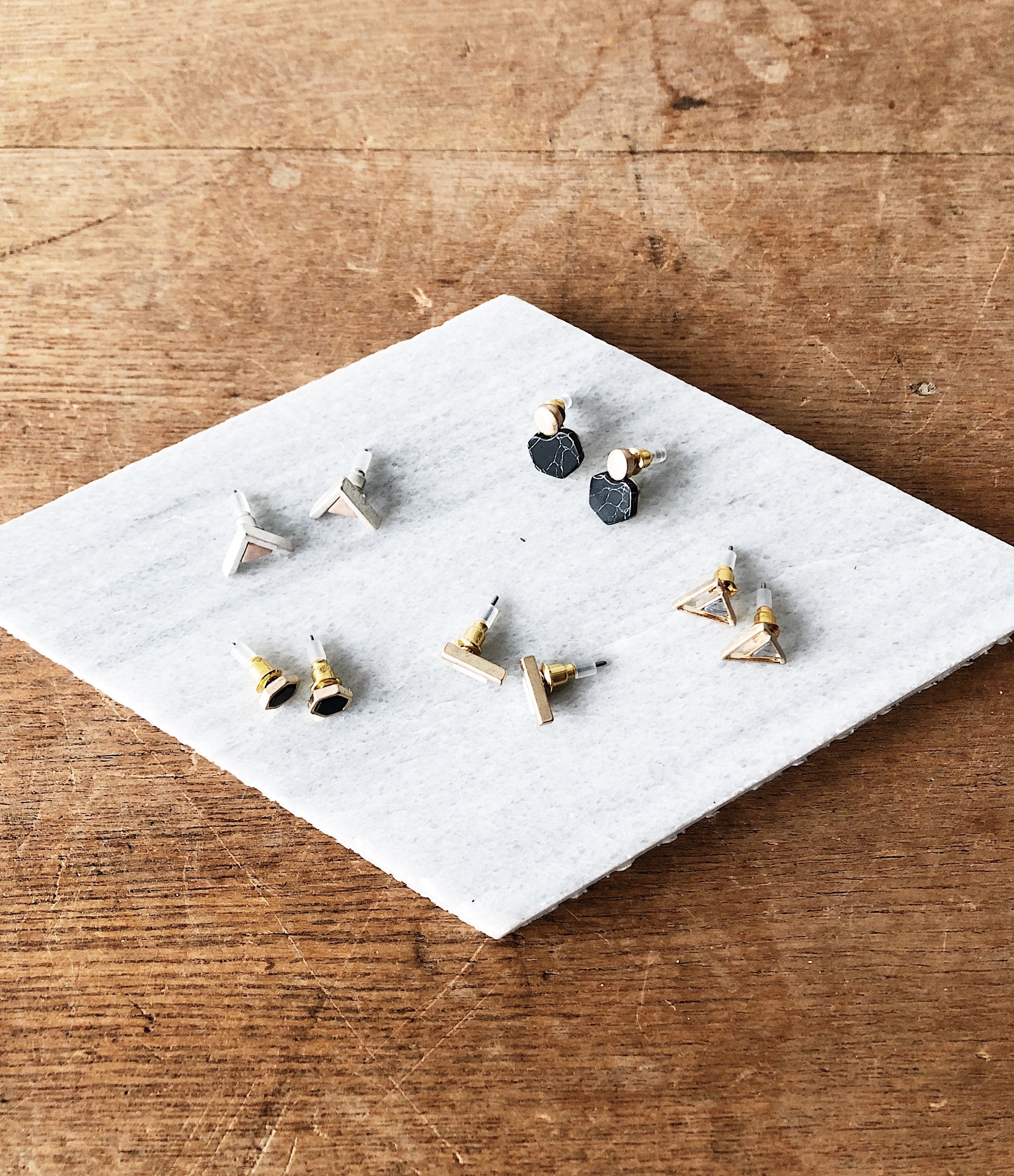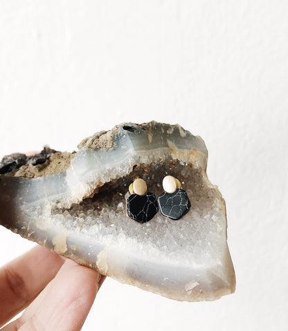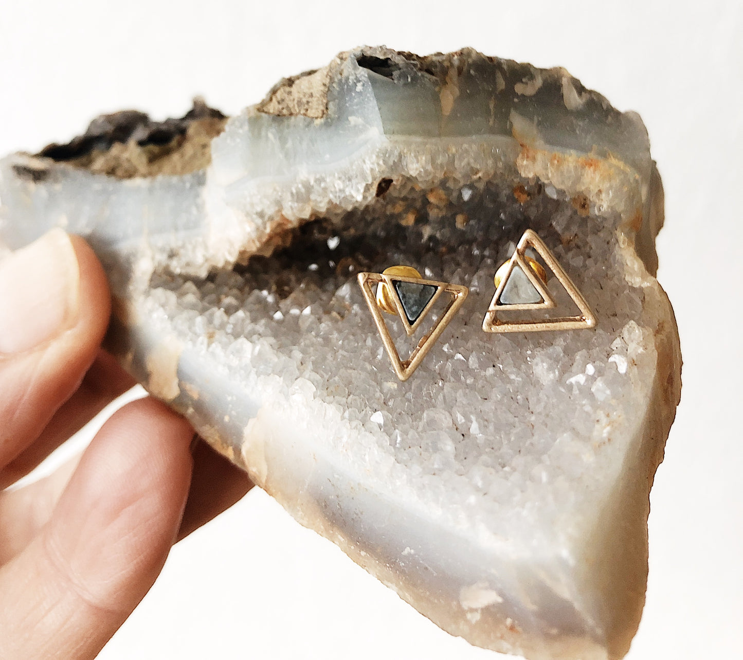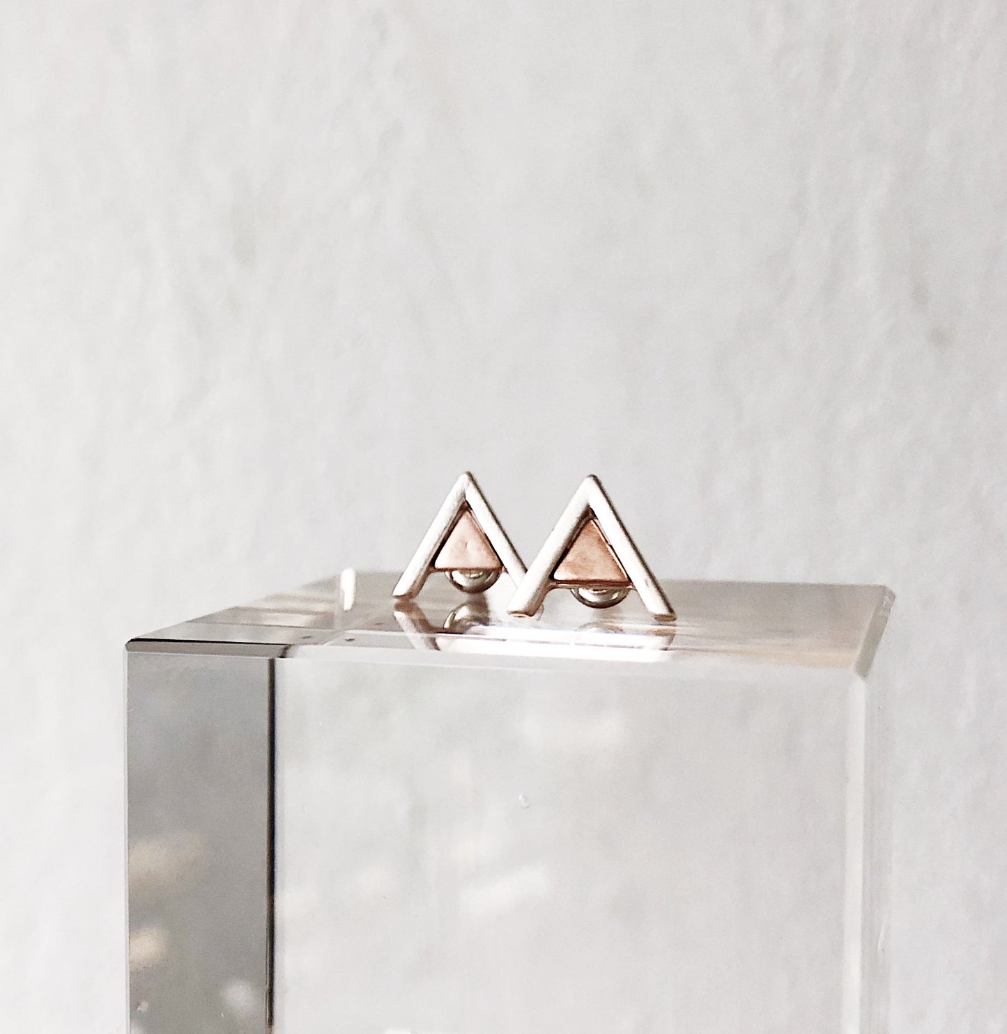 Petite stud earring pair with fantastic geometric shapes. Simple and pretty. Mixed metal