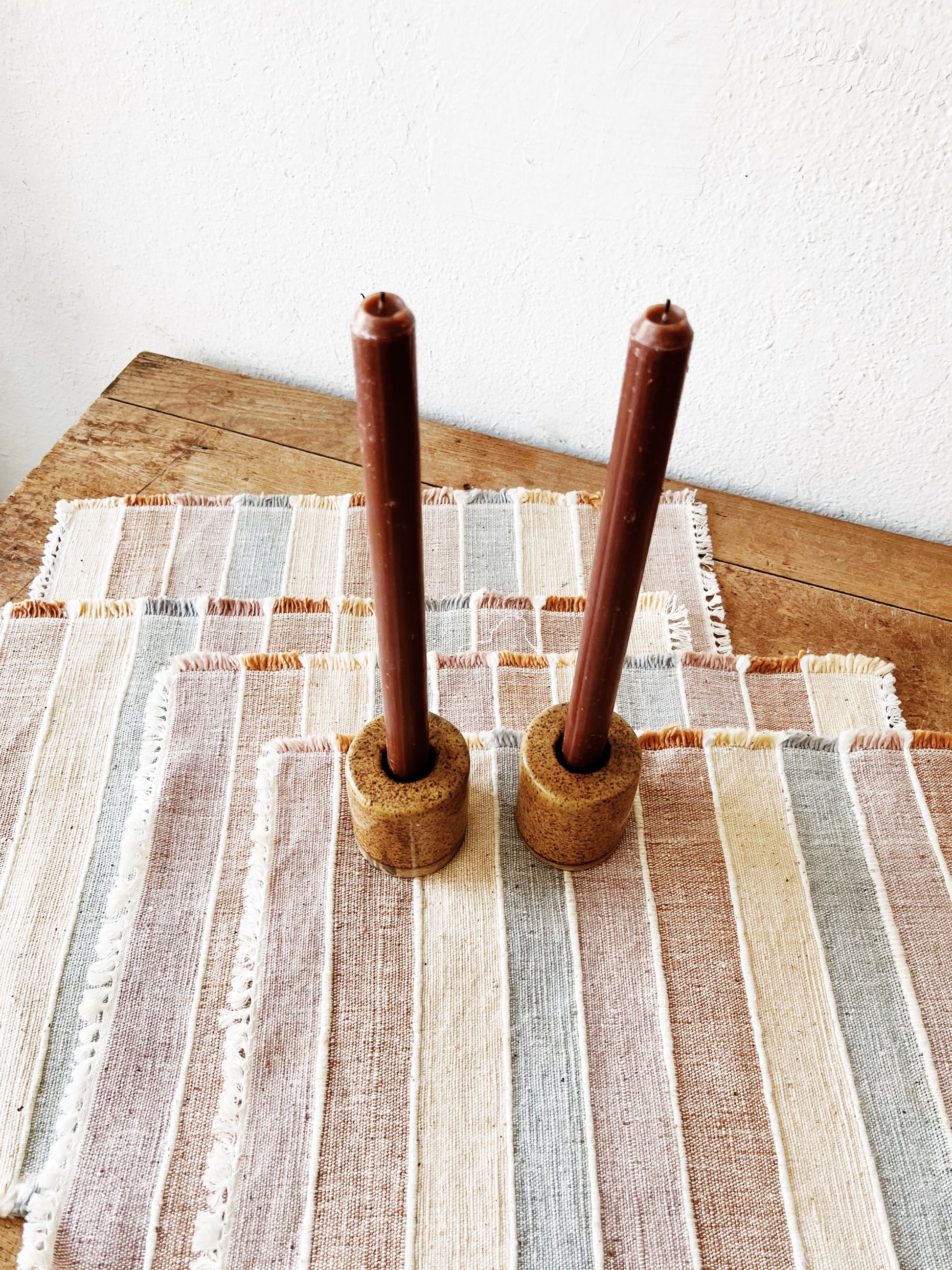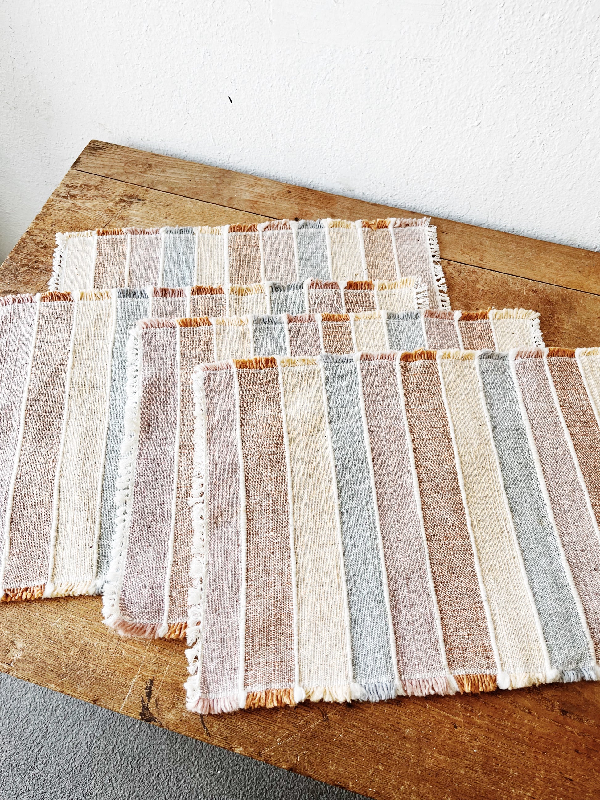 A nice set of four woven cotton placemats in faded out earthy pastel colors. Perfect for spring and summer season. In lovely condition with minimal wear.