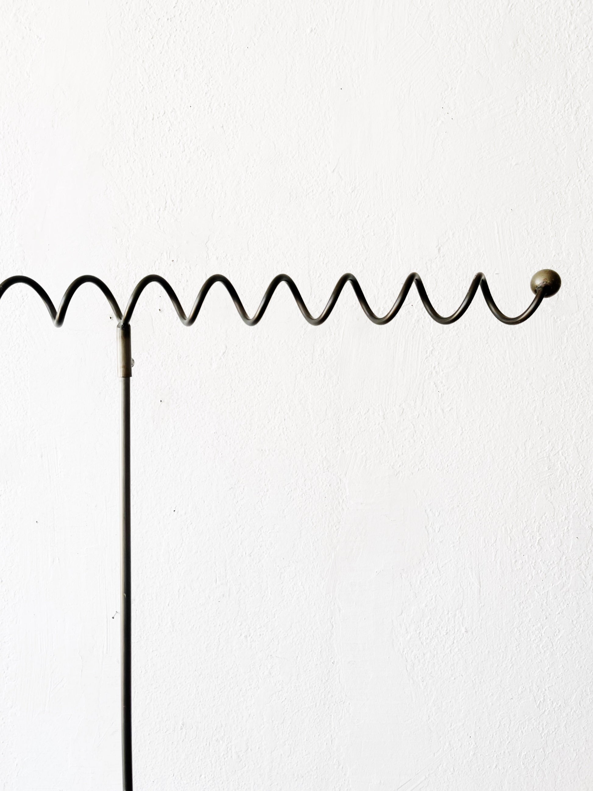 A fun and quirky industrial display rack made of steel. Sturdy. The top swivels.