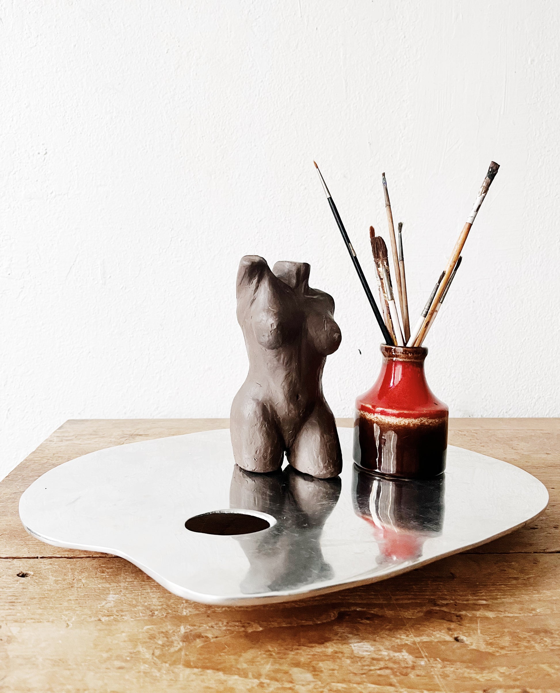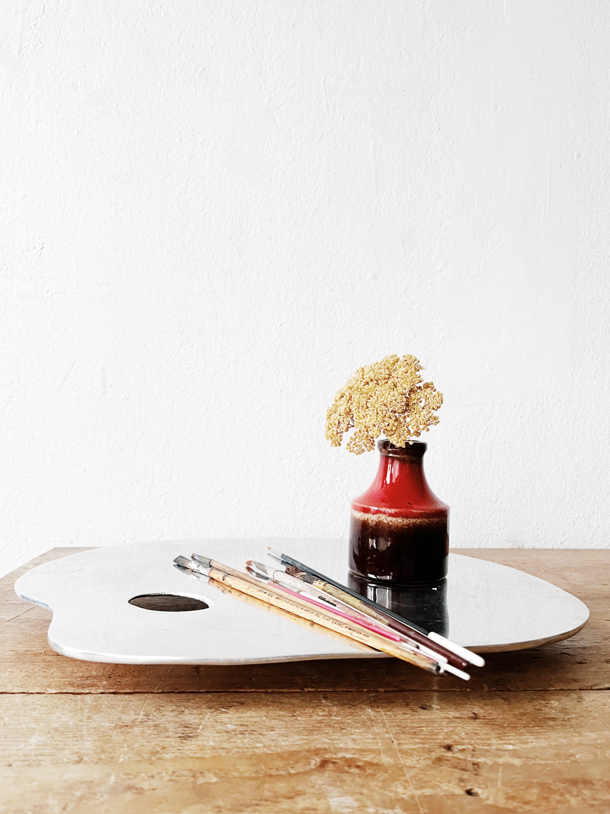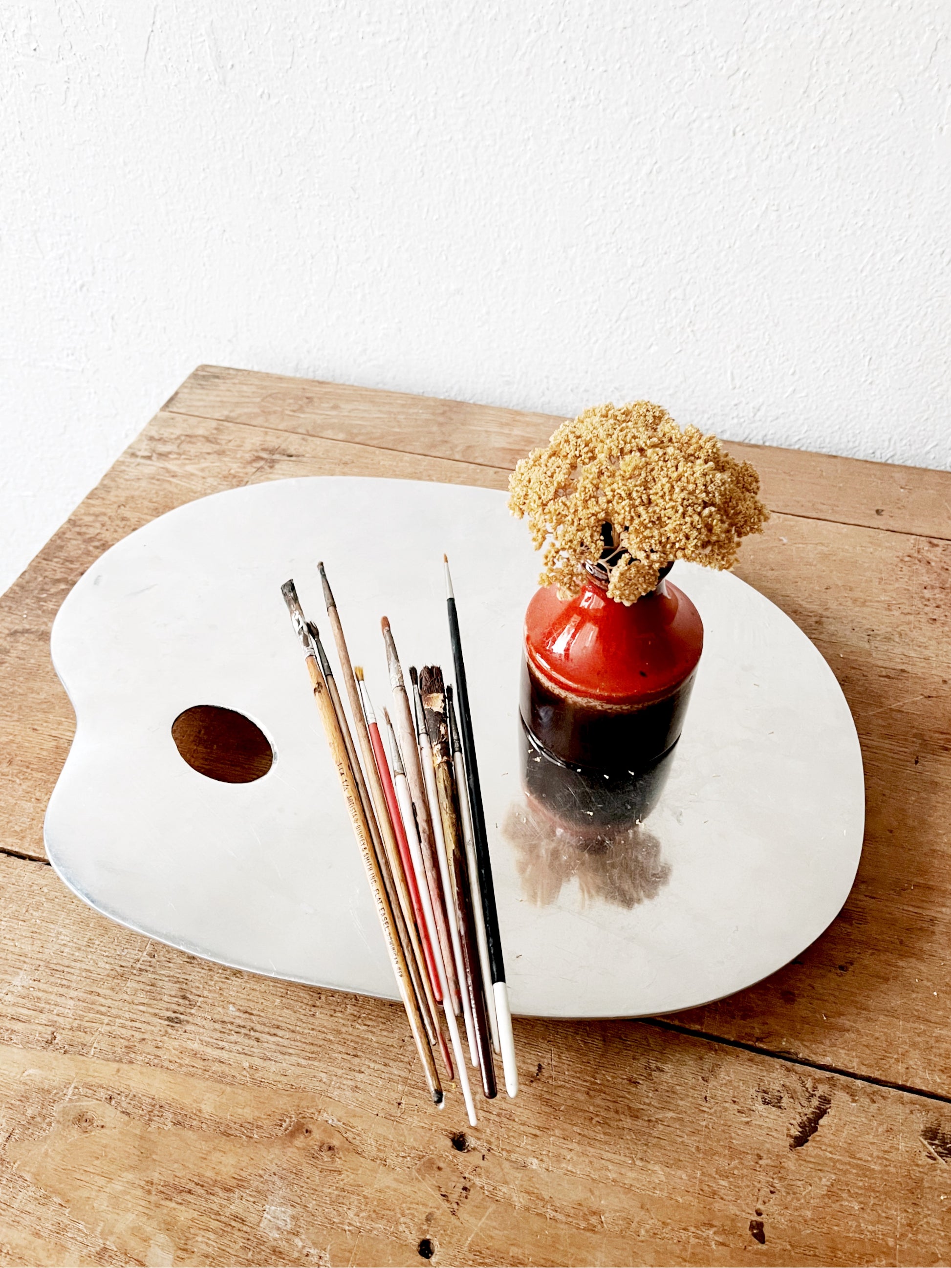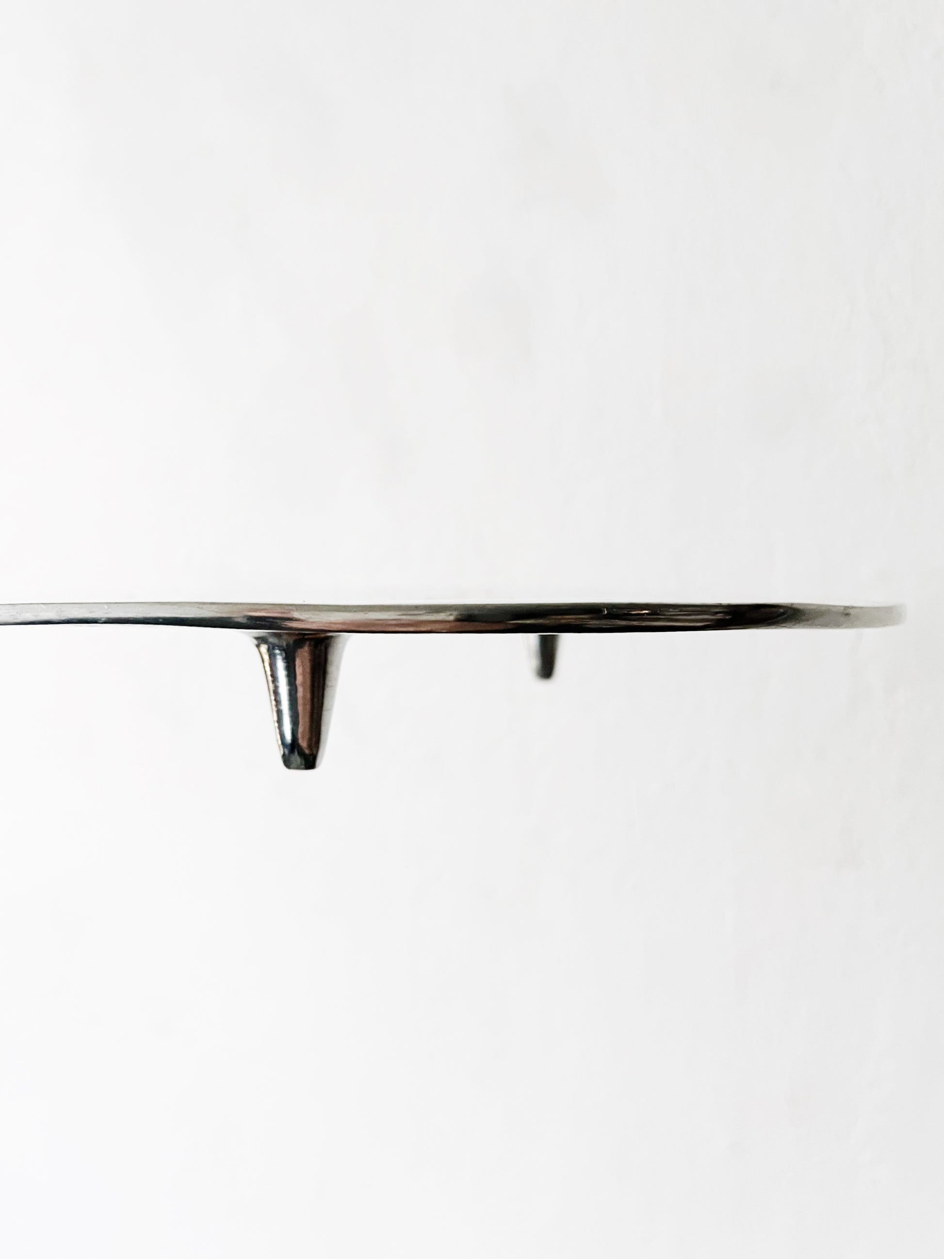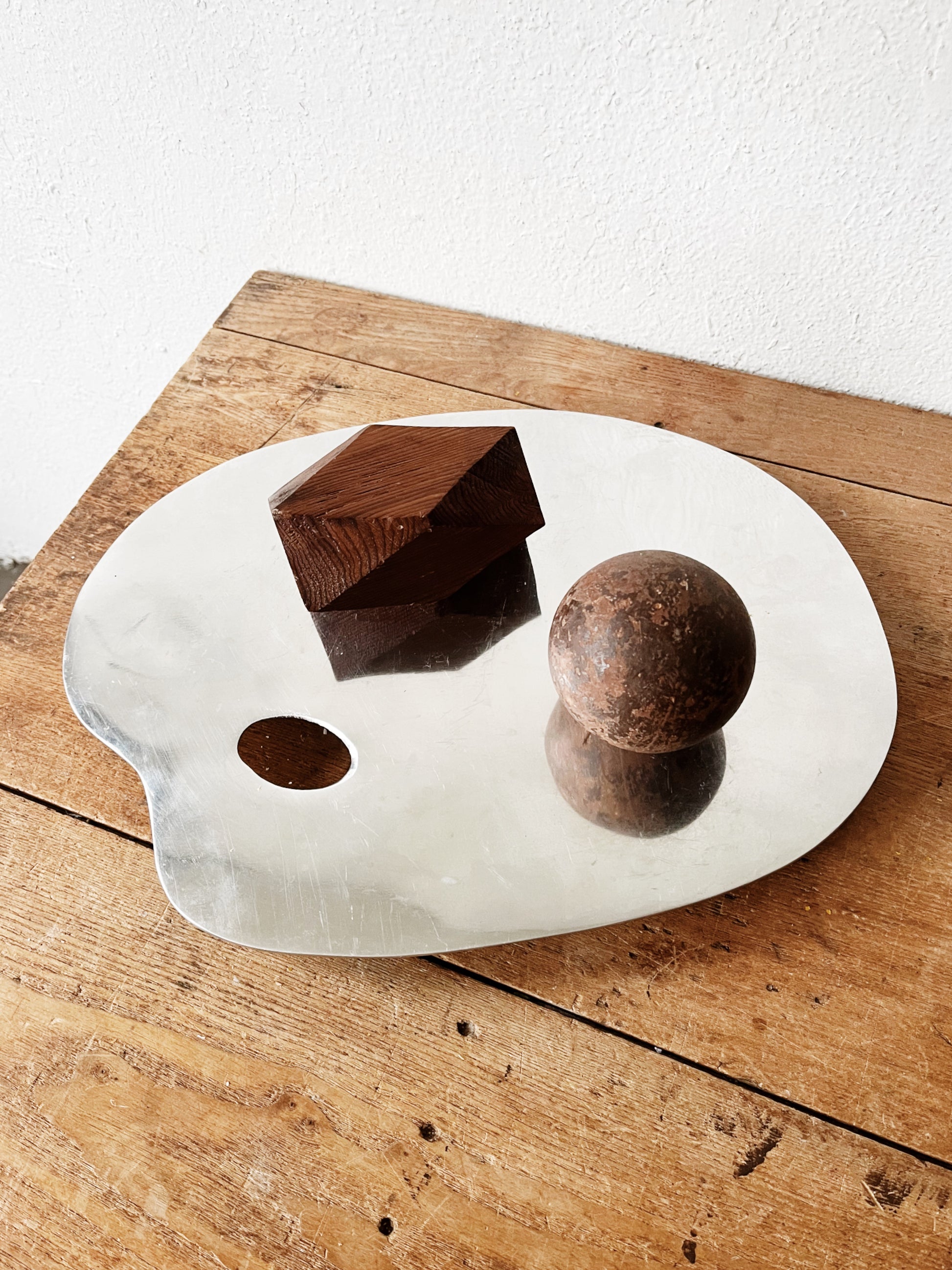 Post Modern era liquid chrome plated painter’s palette. Amazing on a dresser for displaying treasured objects.
