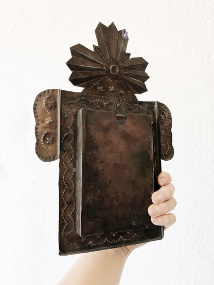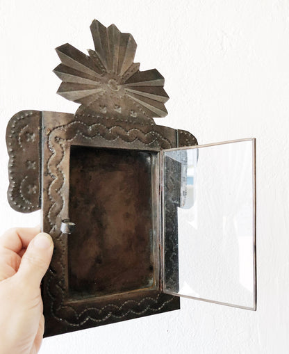 From Mexico, pressed tin with glass door for your dia los muertos altar or treasures