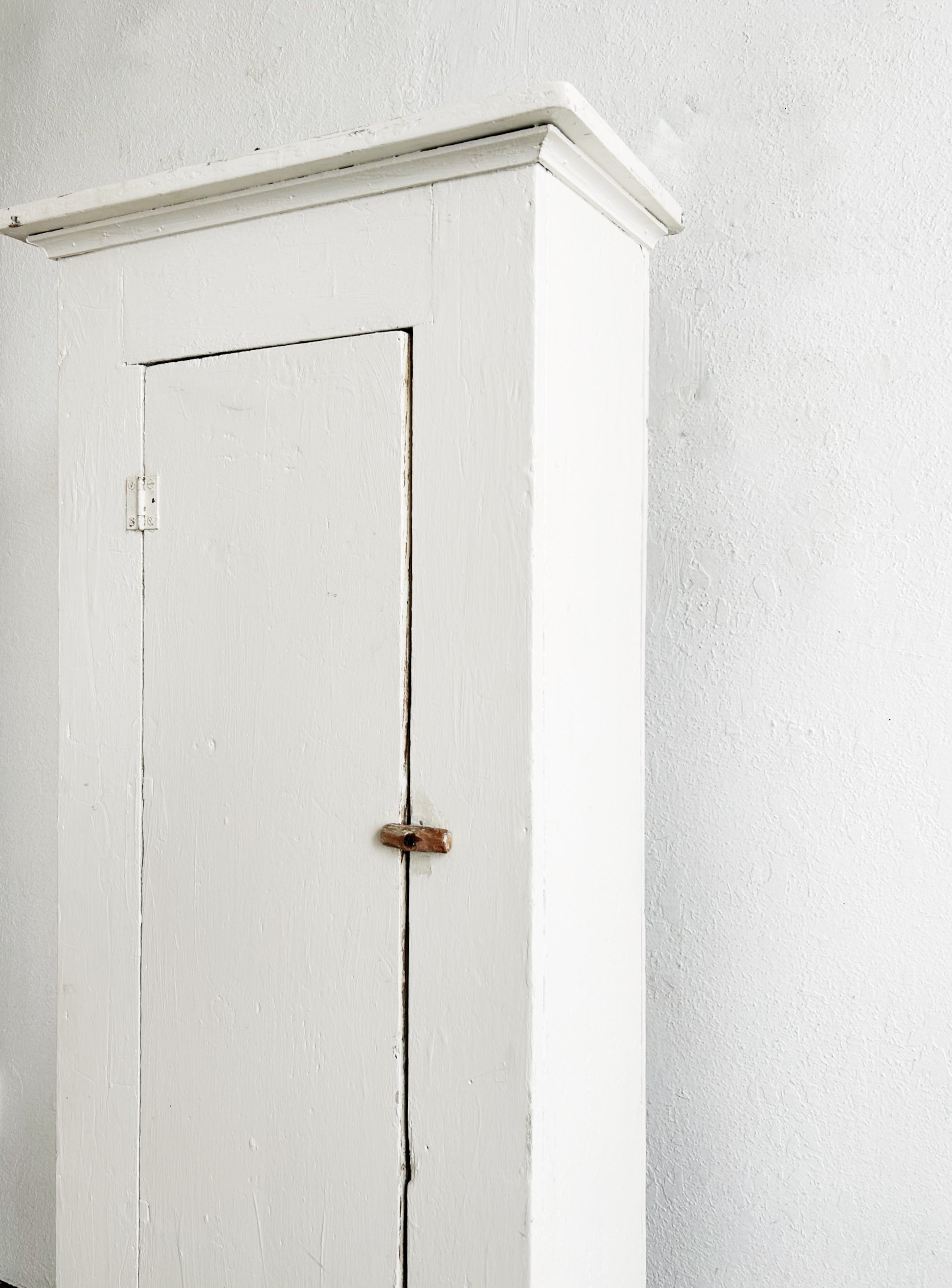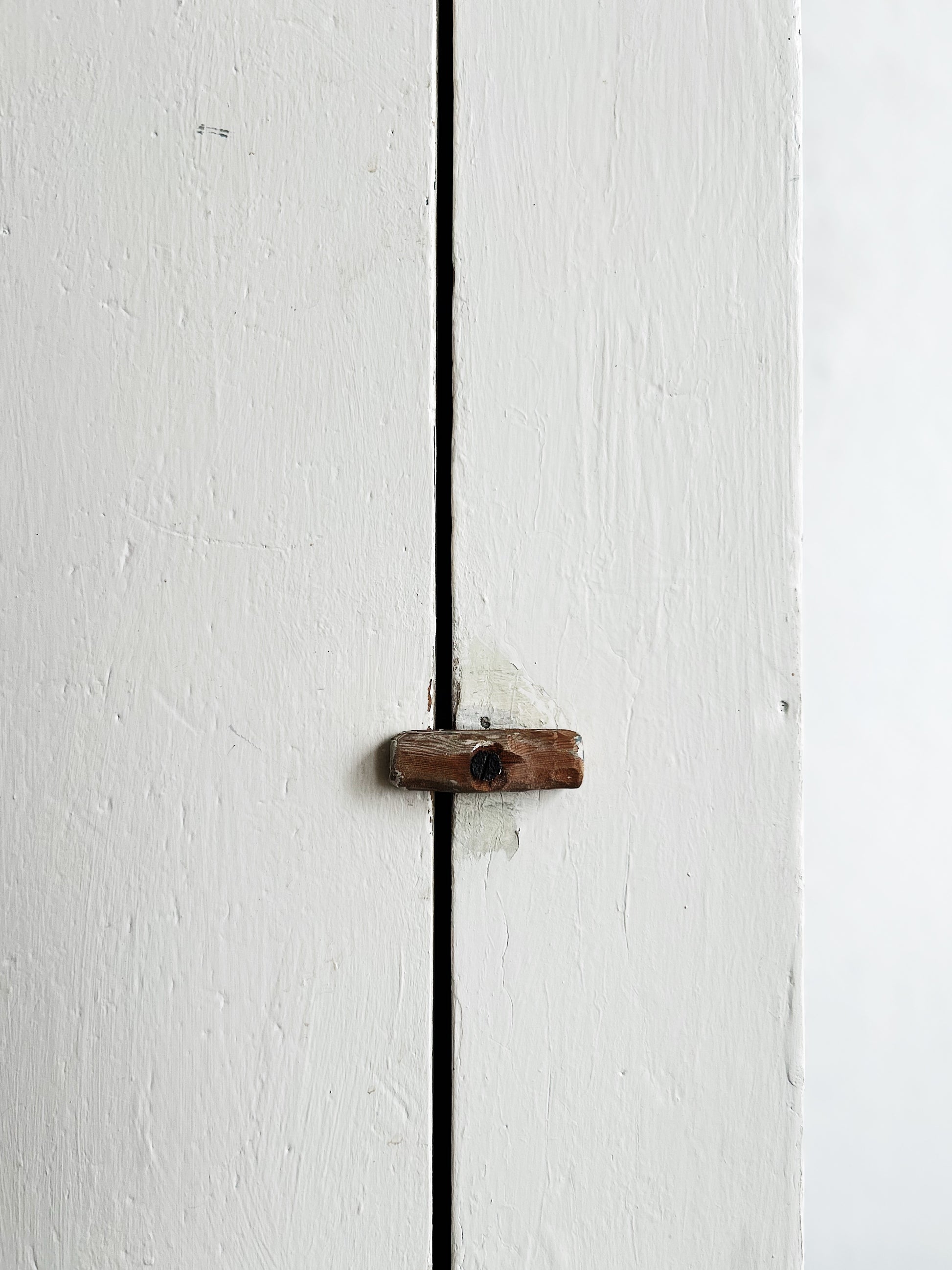 Primitive wood canning or jelly cabinet. Perfectly sized for use in a kitchen or bath too. Nice and worn in, just enough. Original turn knob. Stationary shelves. Has an ever so slight wobble. We recommend small wood shim.