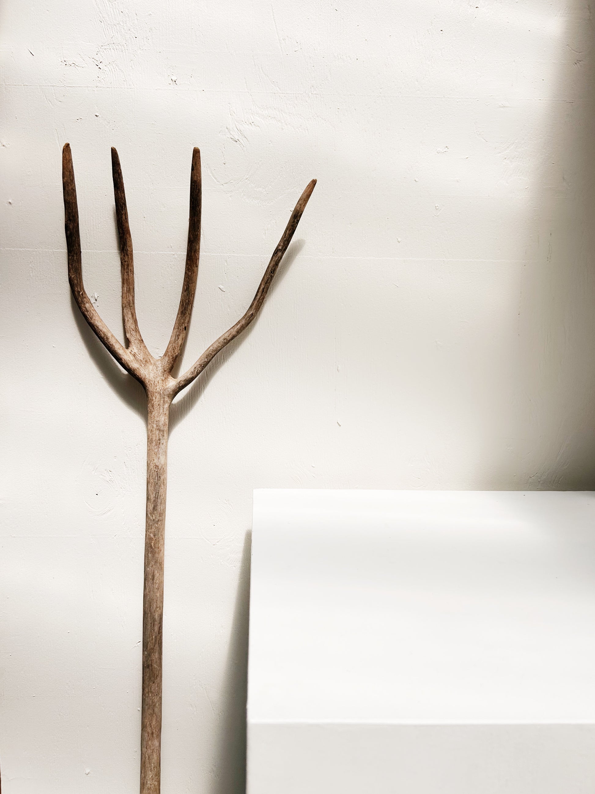 Primitive hand made yard tool. Smoothed with age and use. We recommend this for decor purposes only due to the fragile nature. Wonderful sculptural object