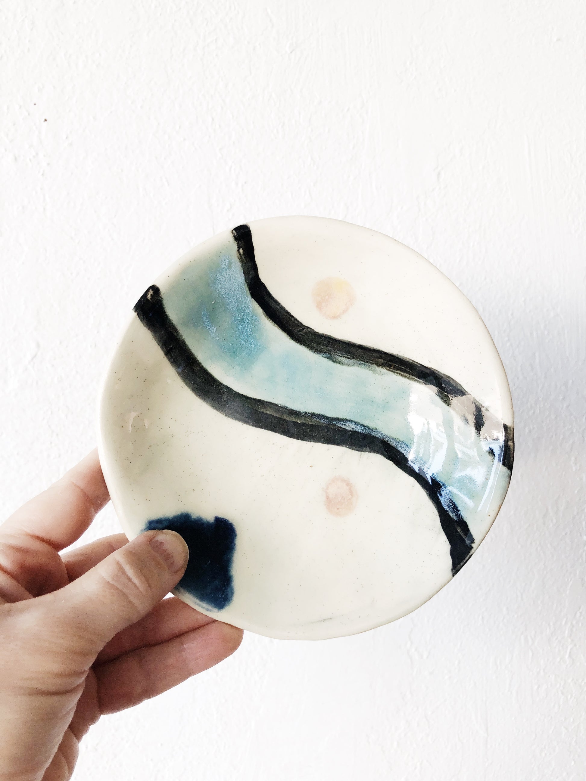 Gosh we love these handmade dishes. They are just the right size for a snack...or a catchall for jewelry