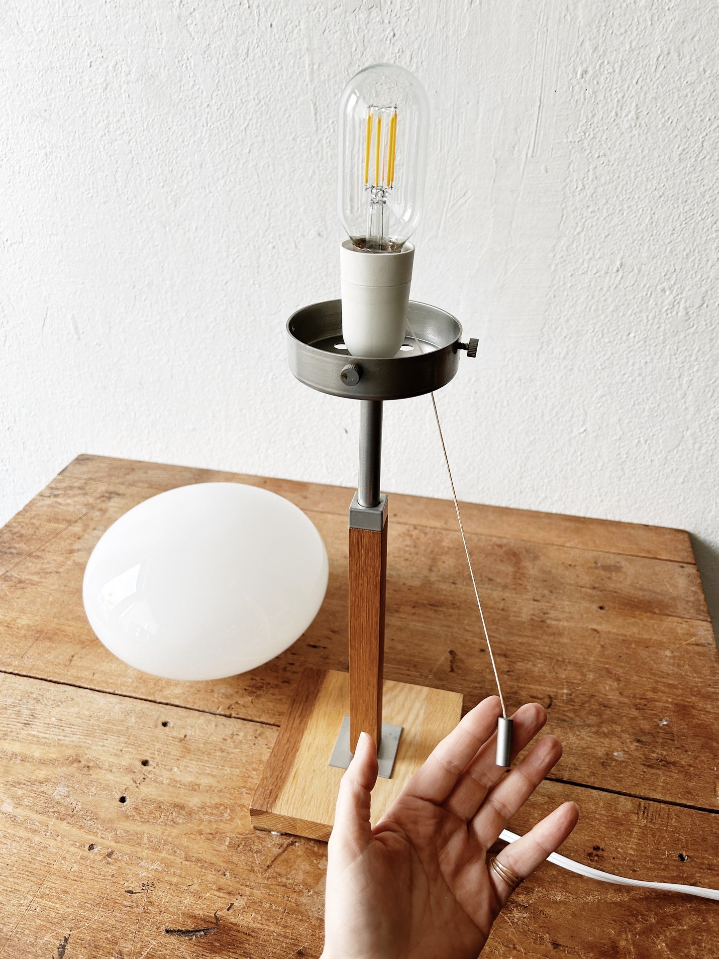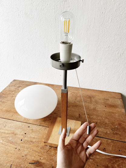 Rare 1980’s IKEA Lareda lamp in excellent working condition. Wood and glass. Weighted pull cord.