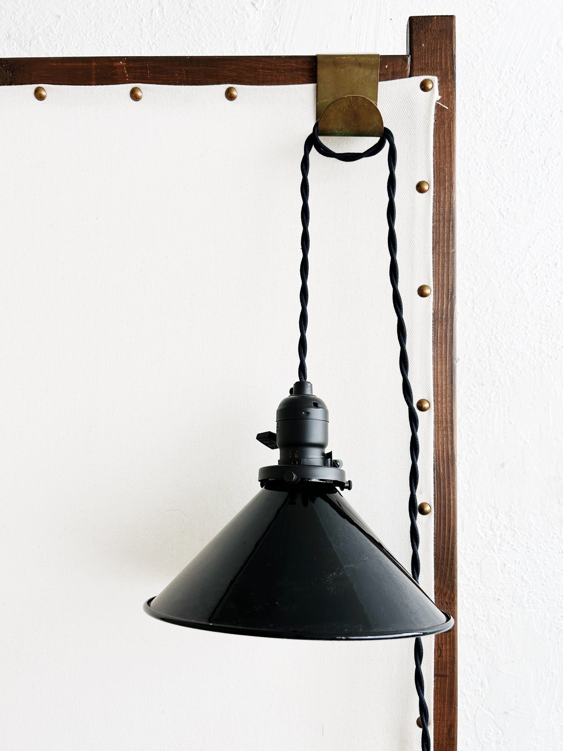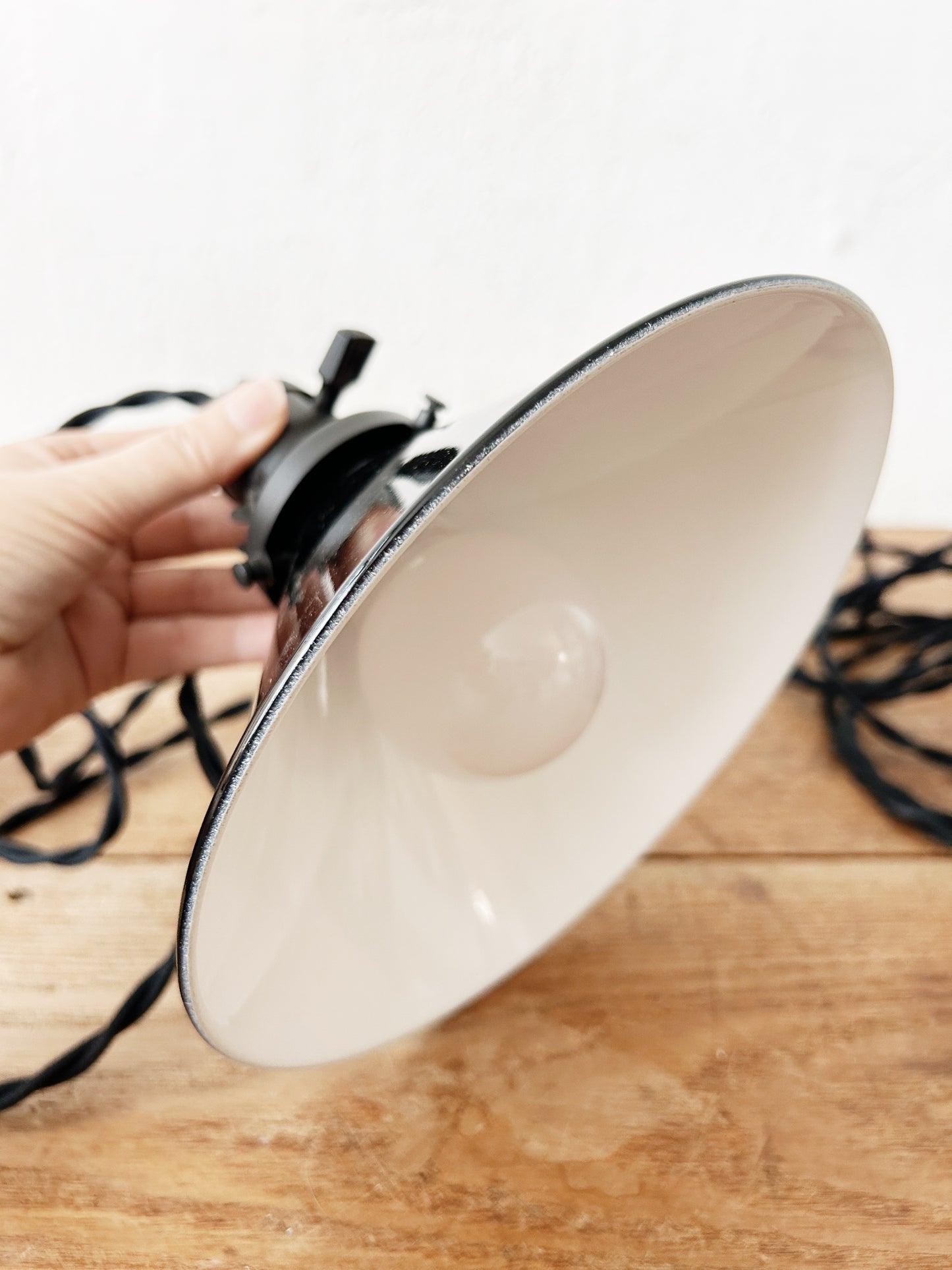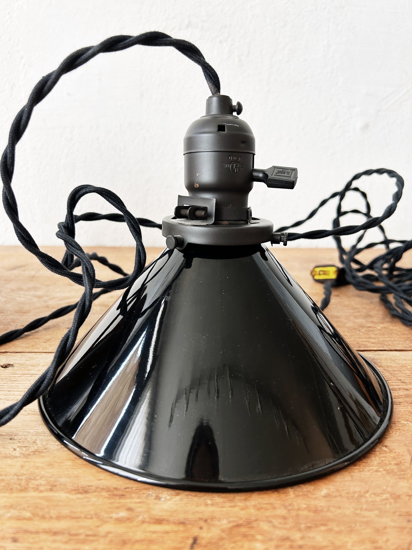 Black enamel rejuvenation pendant with cotton plug in cord. Switch on socket, excellent condition.
