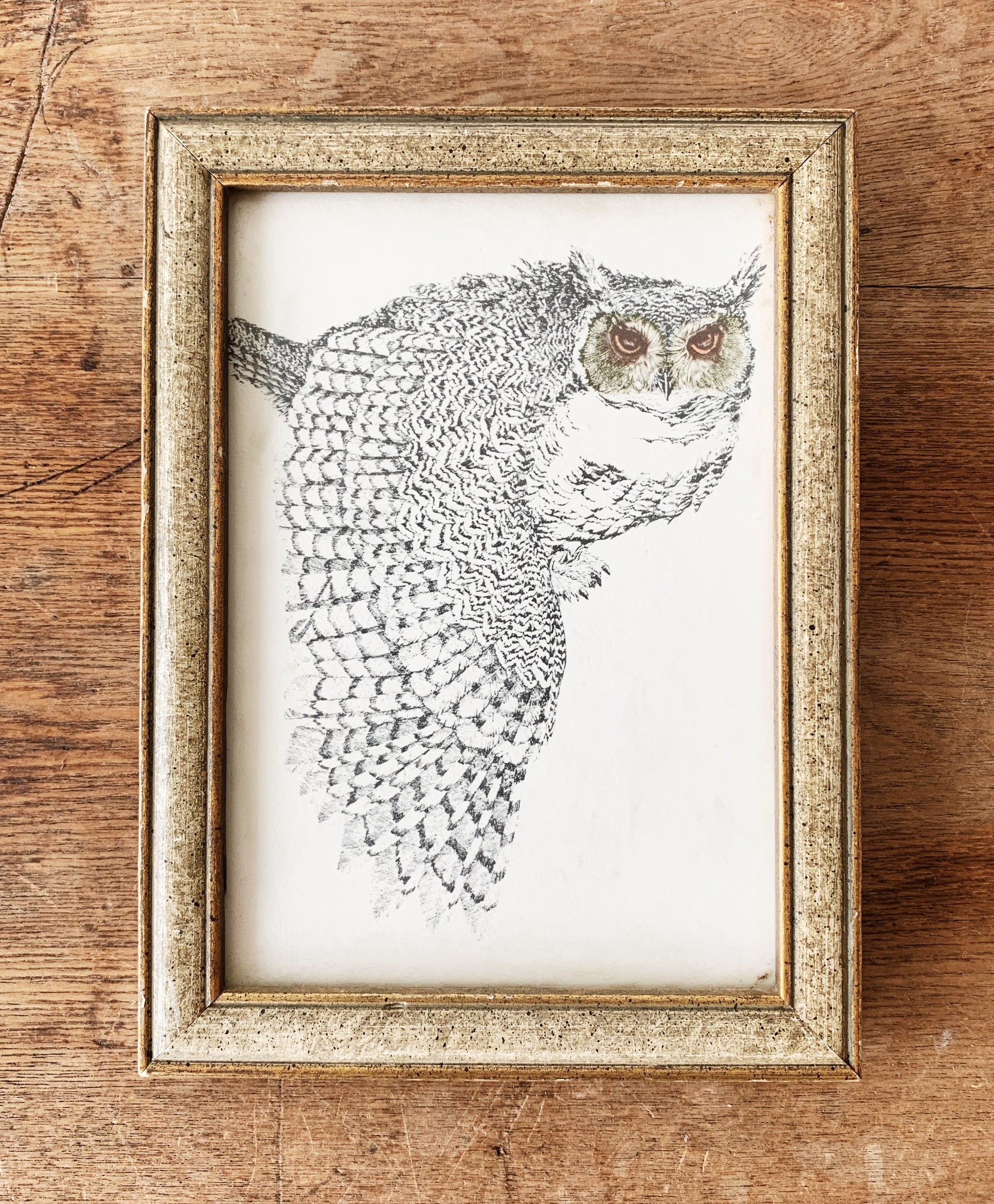 Framed owl print 6x8”