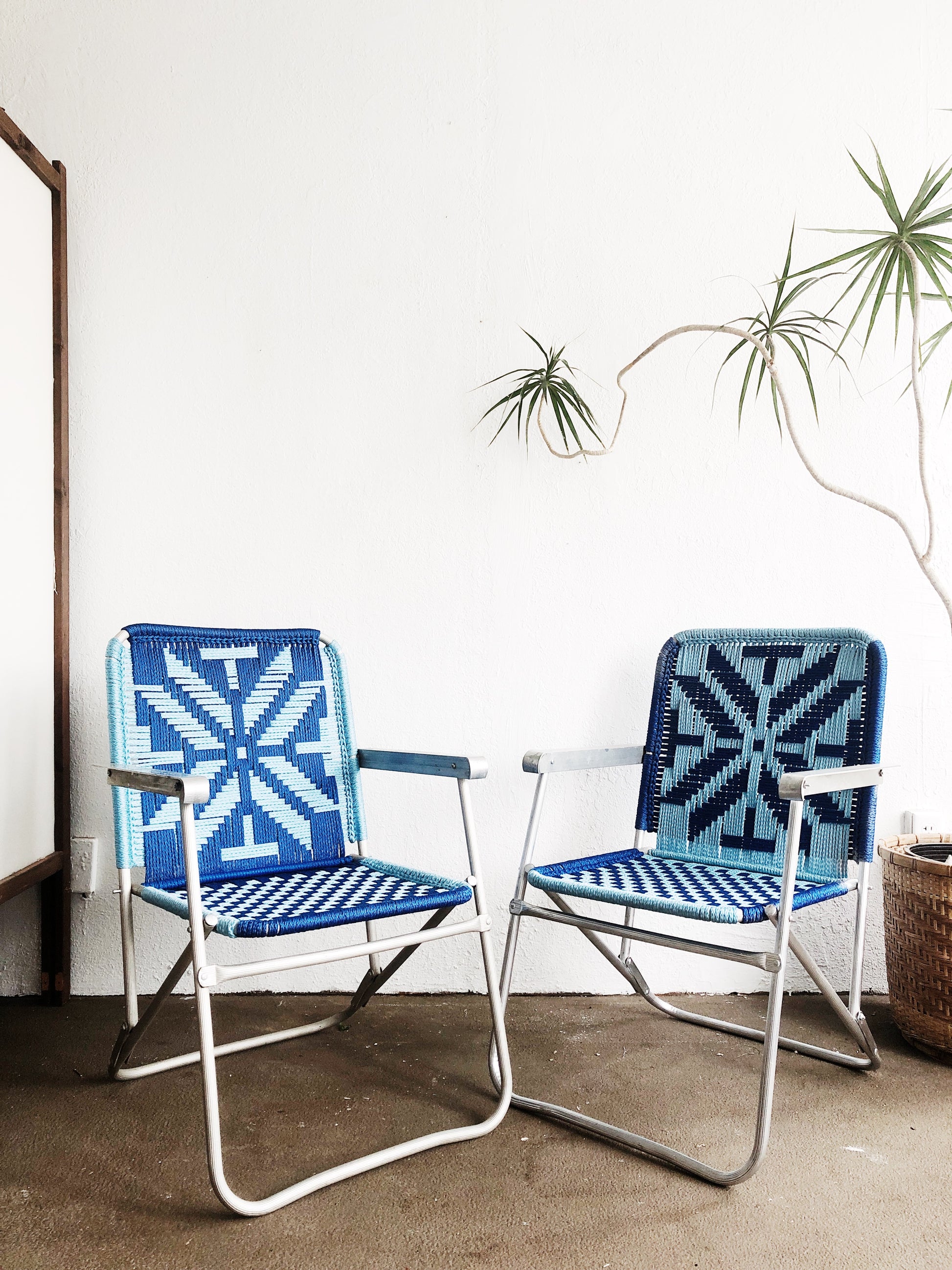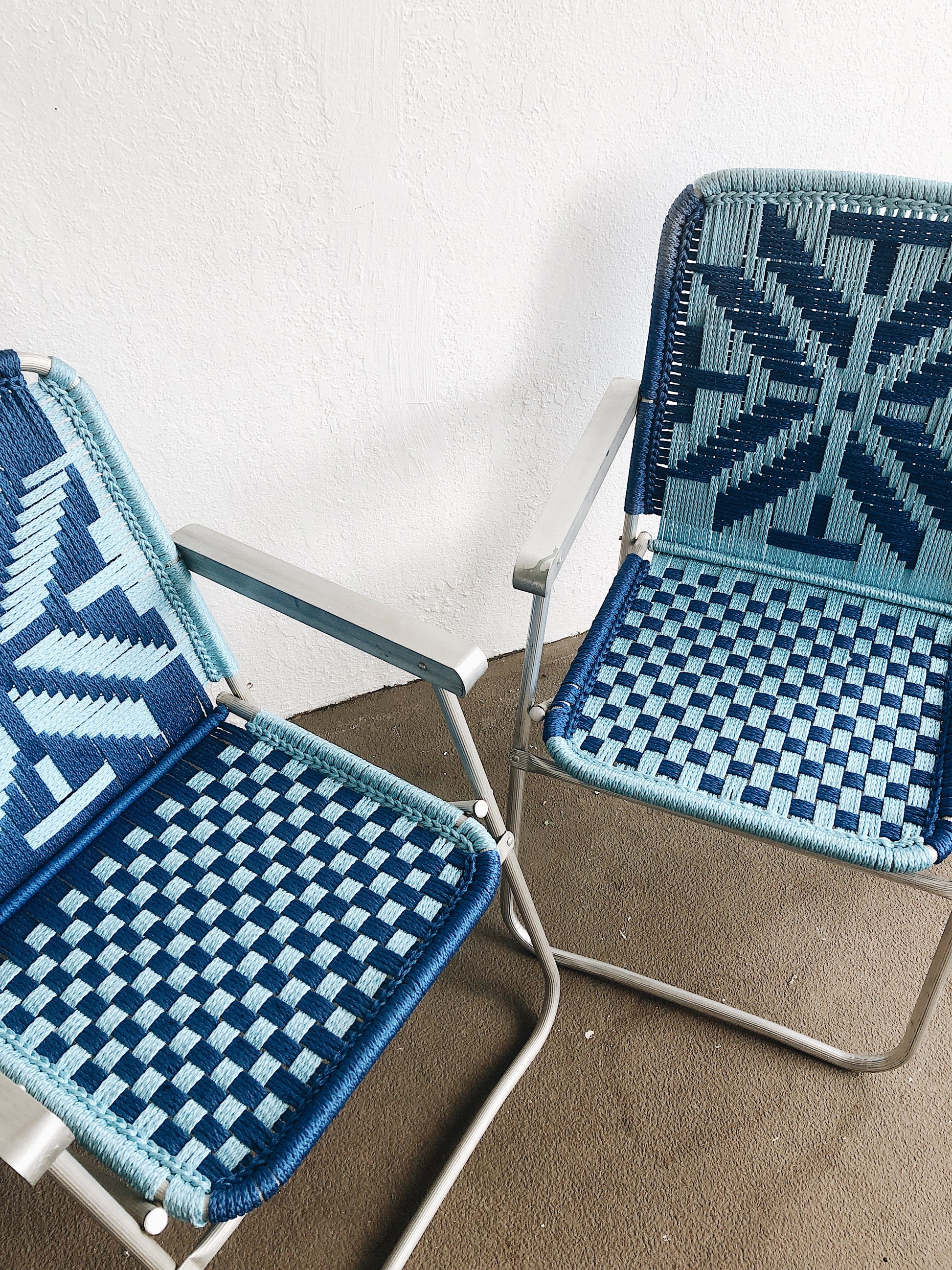 Two vintage macrame chairs with aluminum frame in excellent condition