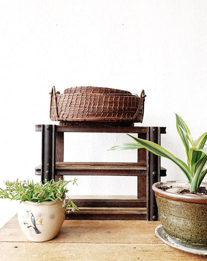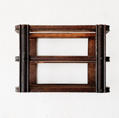 Nice old rustic open shelf. Great for plants! You can add thin pieces of wood or stone too. Great look to this, sit tabletop or hang
