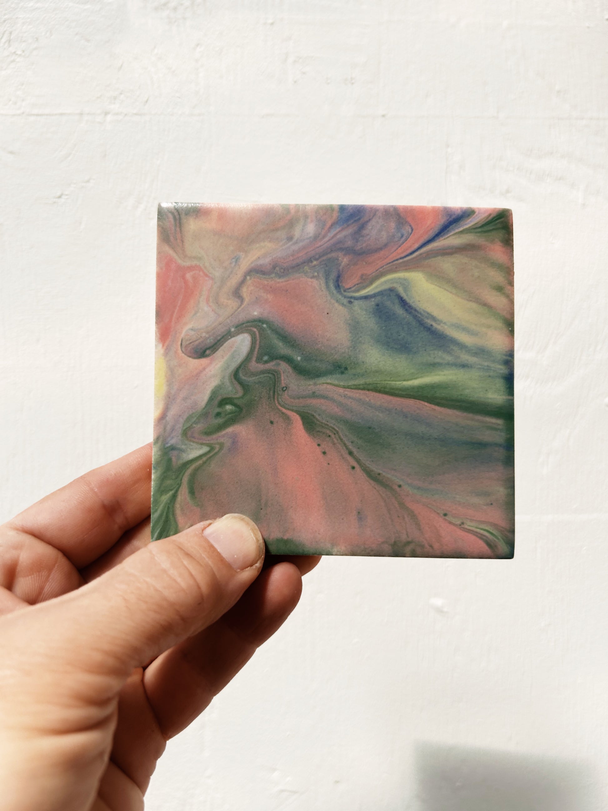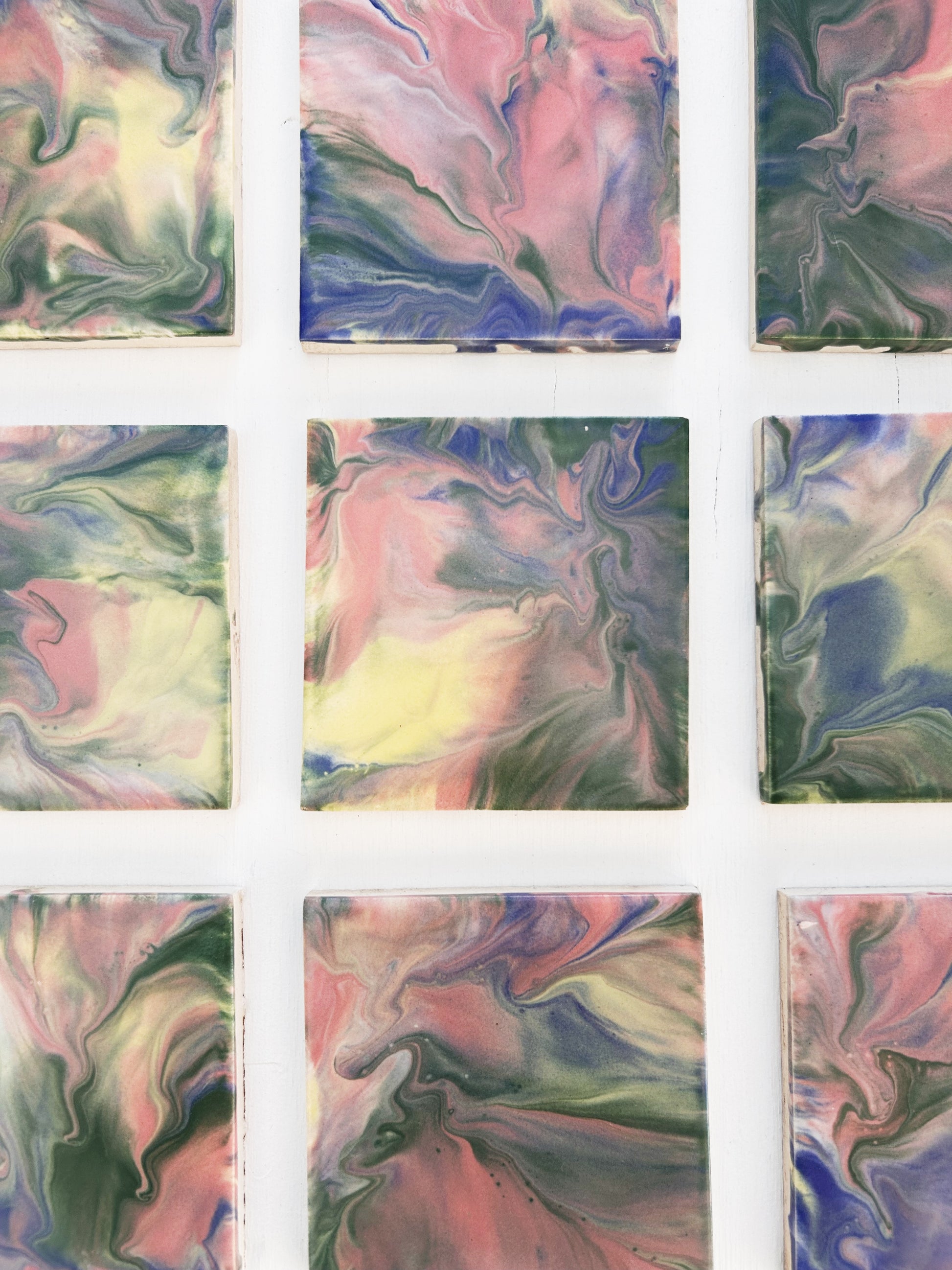 Set of nine handmade in Portland tiles by Pratt and Larson. Each tile is 4 x 4" / set of 9