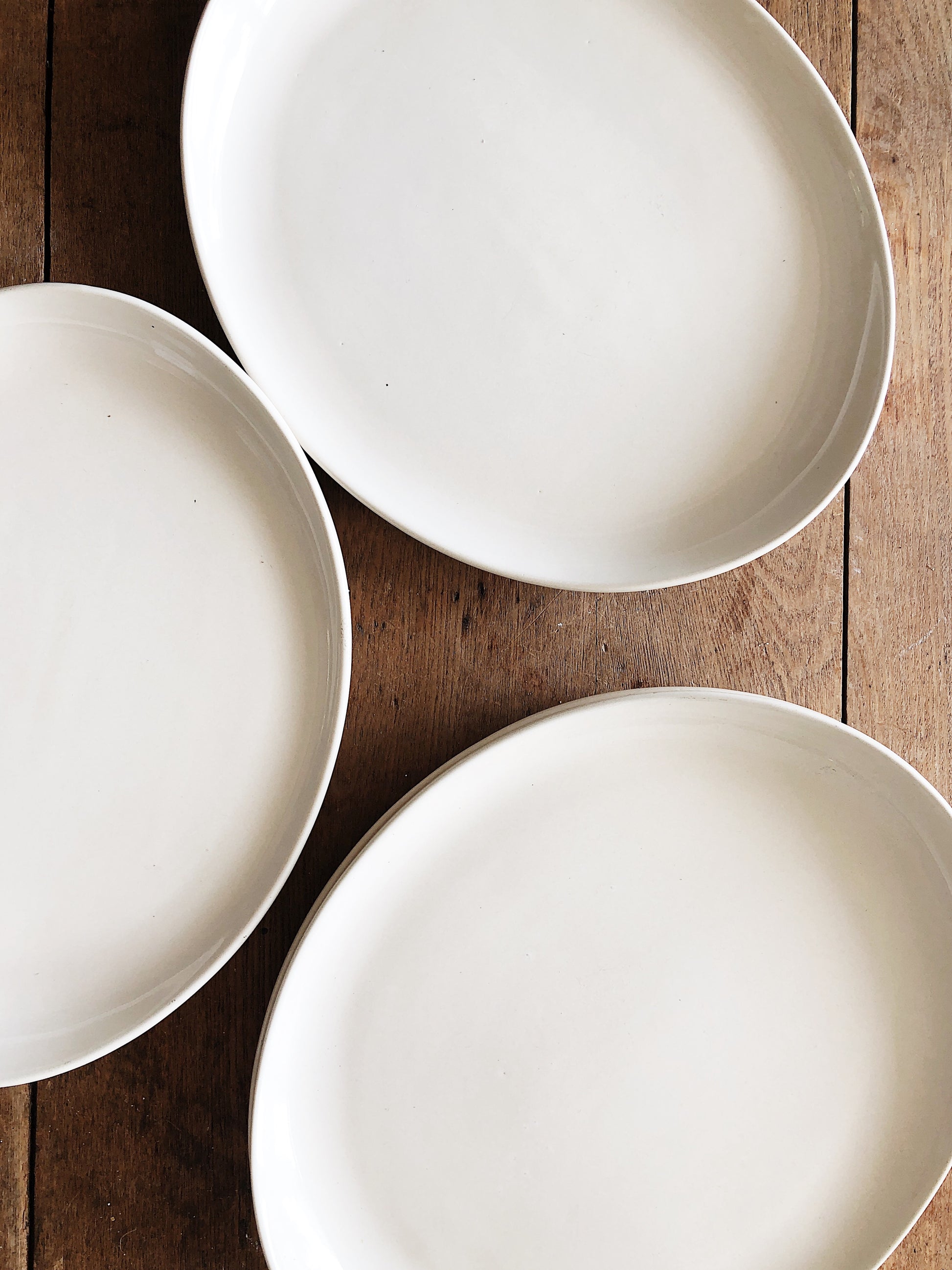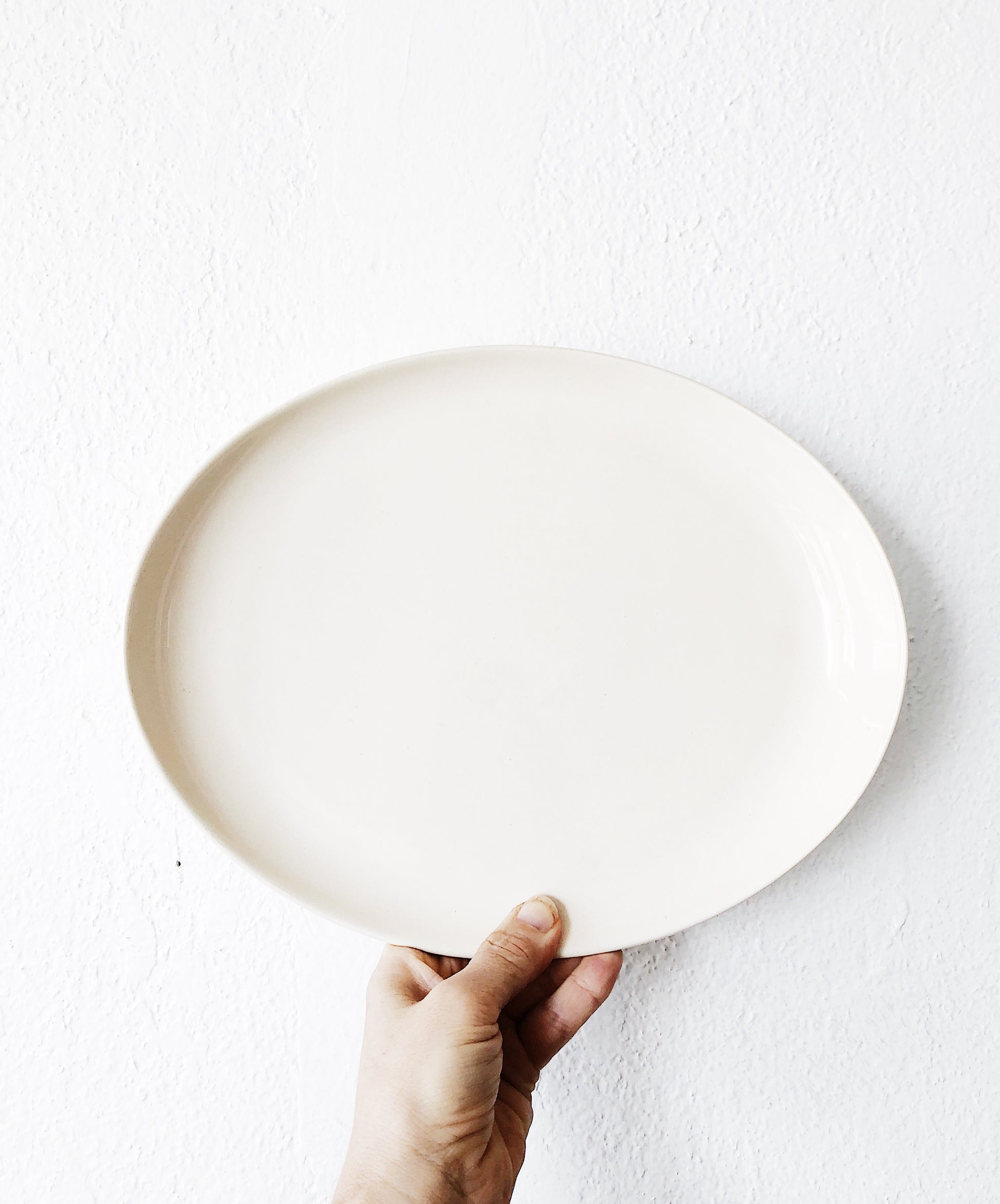 Gorgeous simple mid century modernist style dishes in buff/cream. Look at that shape!