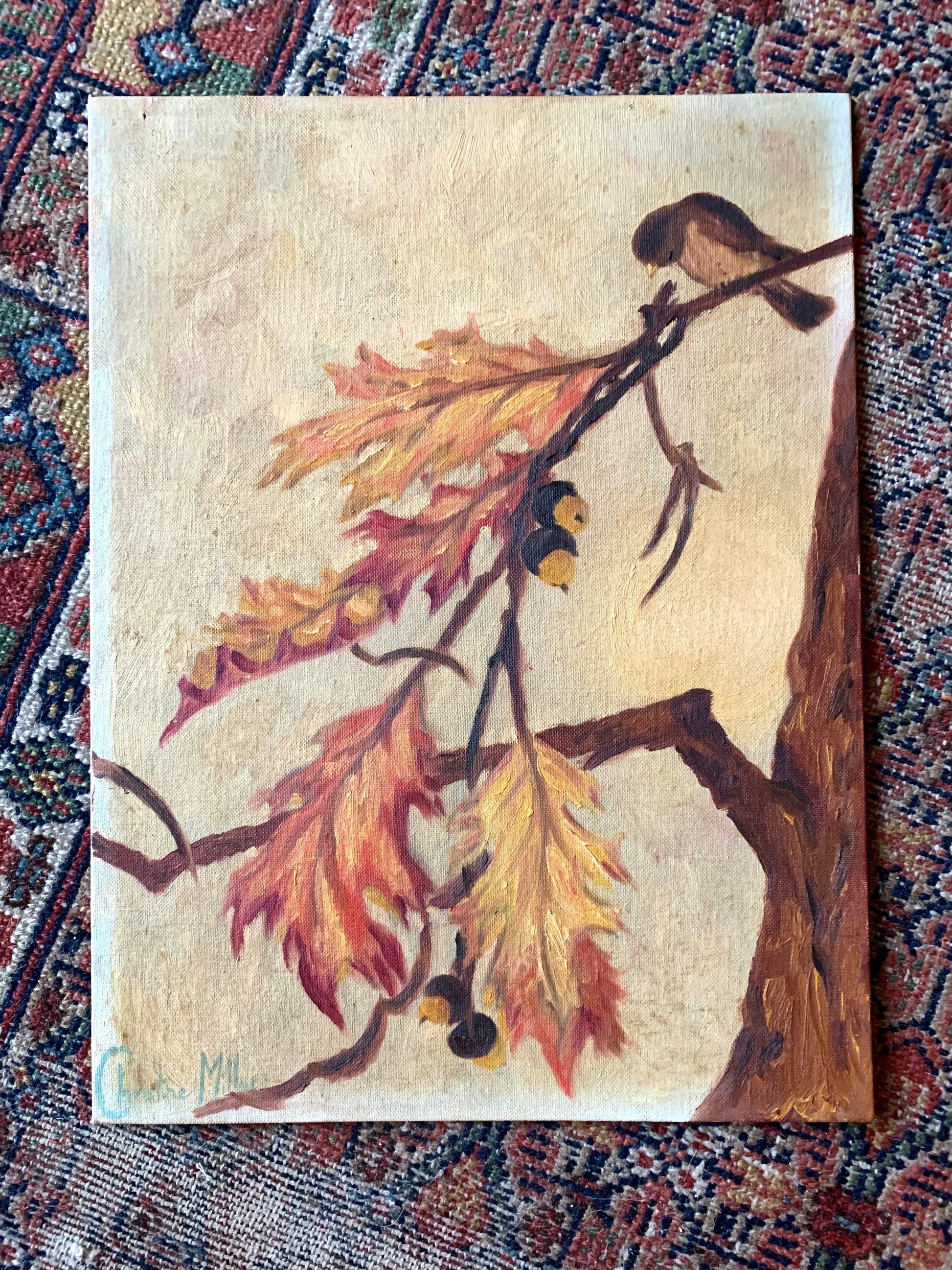 ‘Fall’ original signed mid century painting on canvas panel.