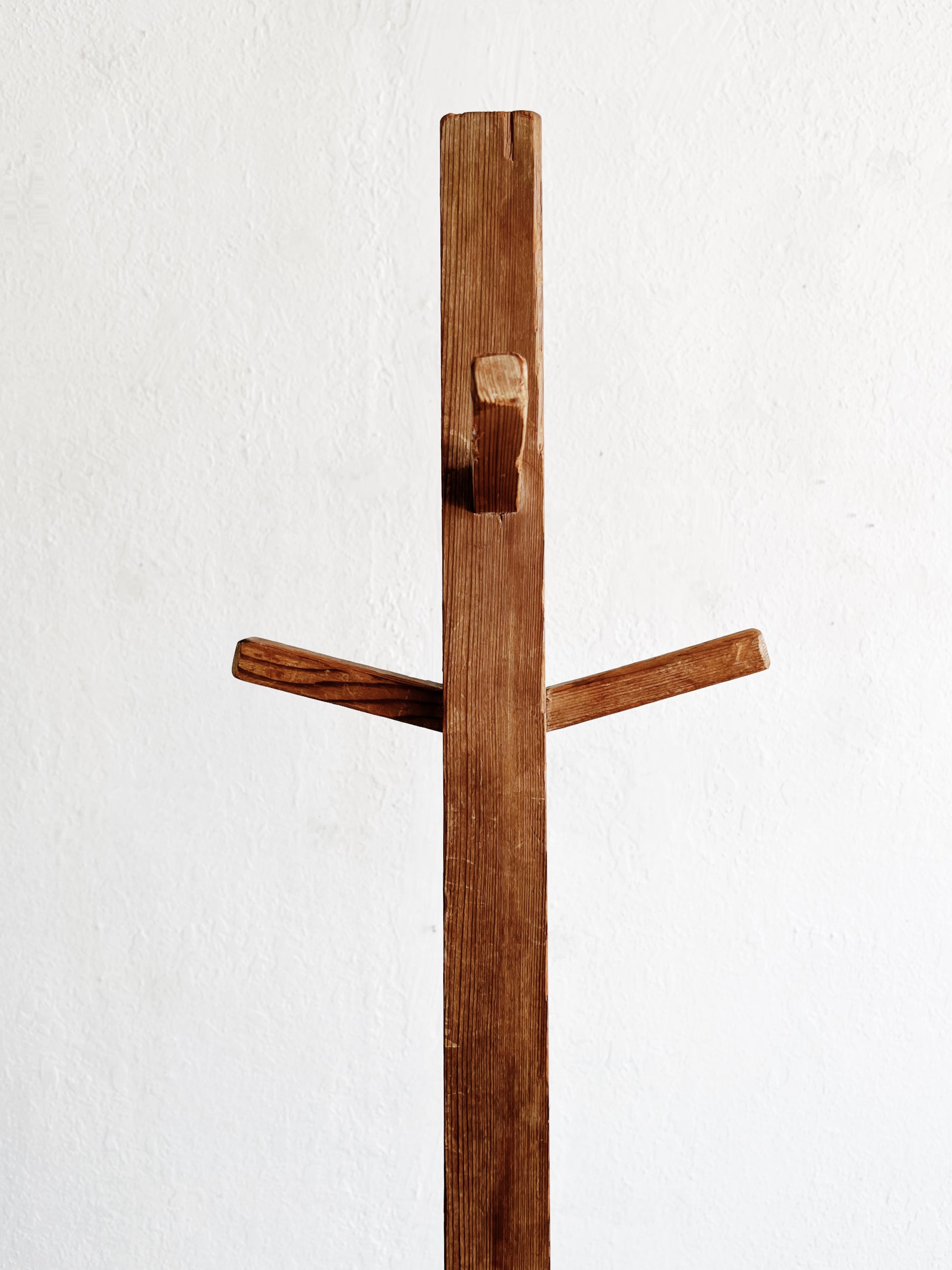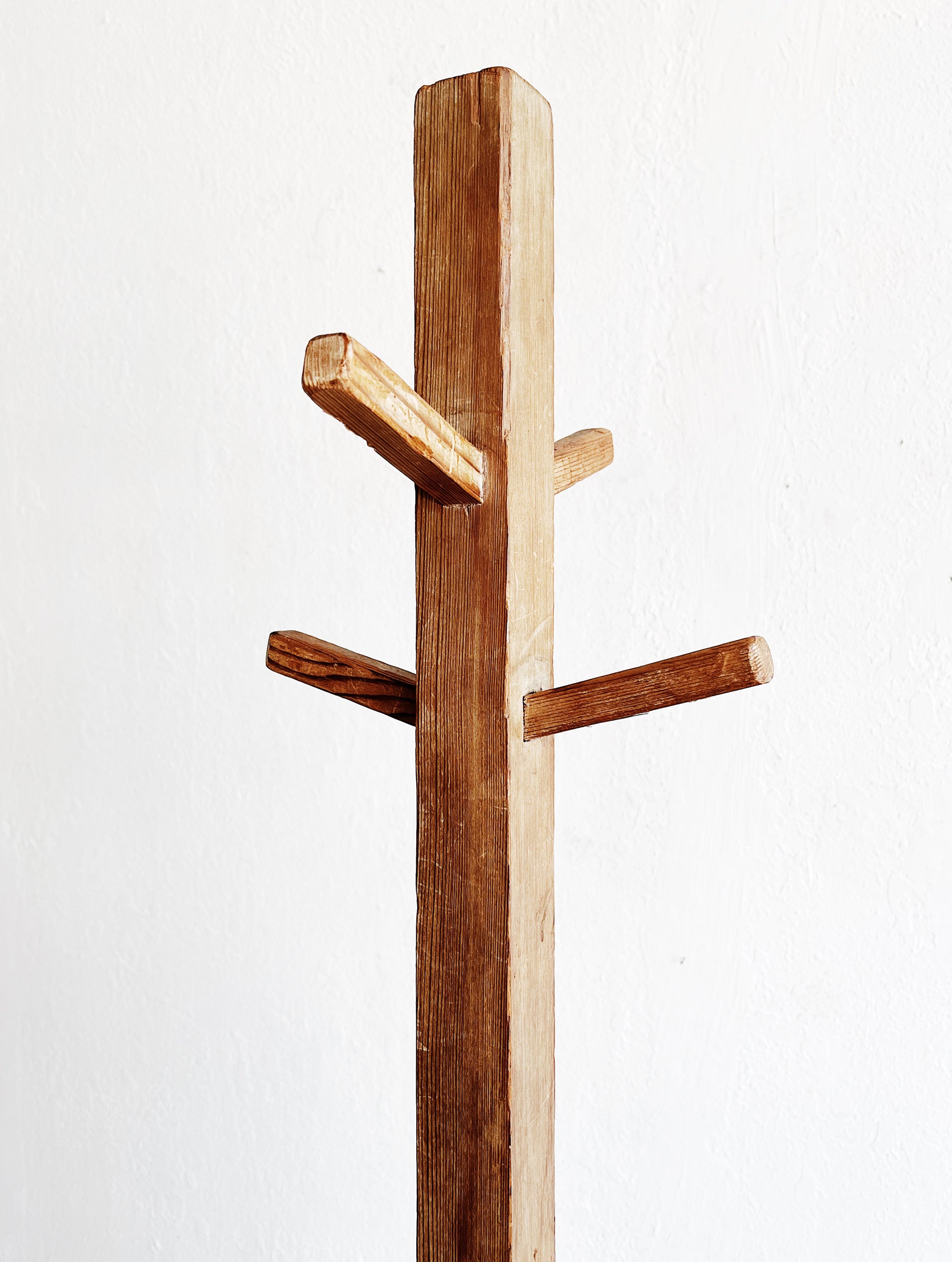 Simplest wood coat rack or hall tree. Most likely form the early end of the 1900s. Wood smooth and sturdy. A good lookin rack.