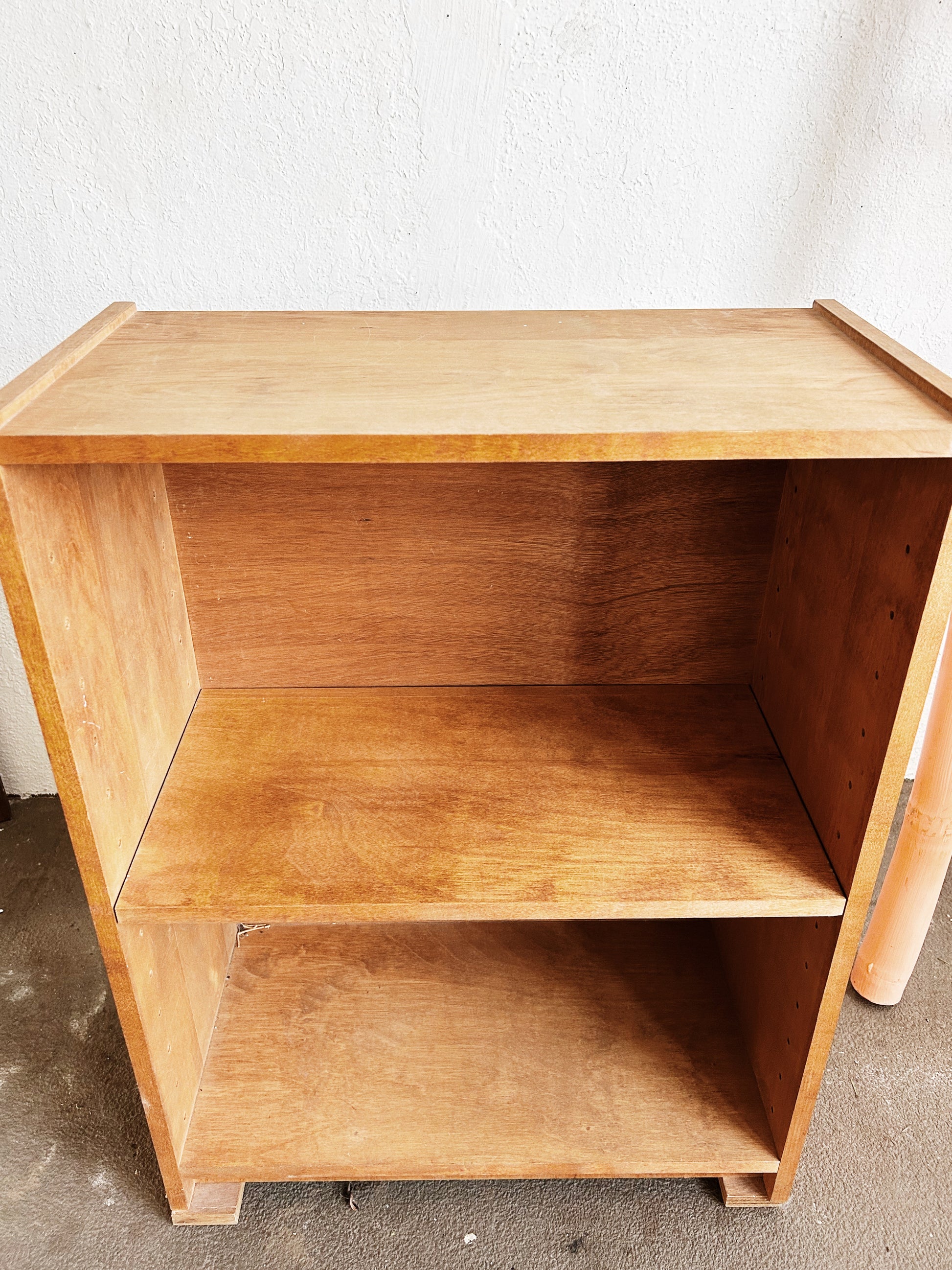 With an adjustable shelf. Natural unfinished wood. Simple and useful, in great condition.