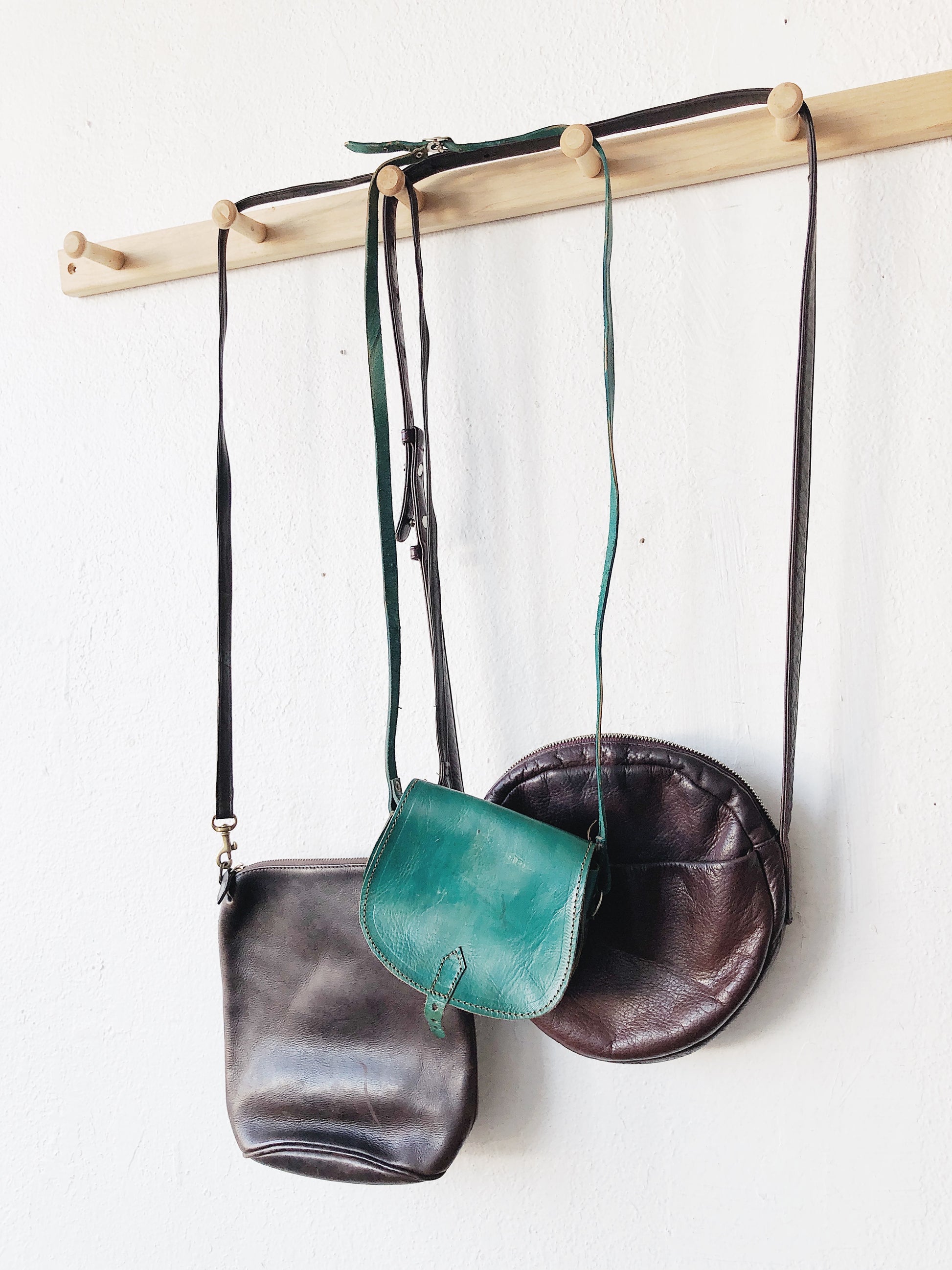 Simple and useful wood peg rack. Two pre drilled holes for hanging. Sturdy