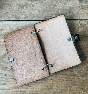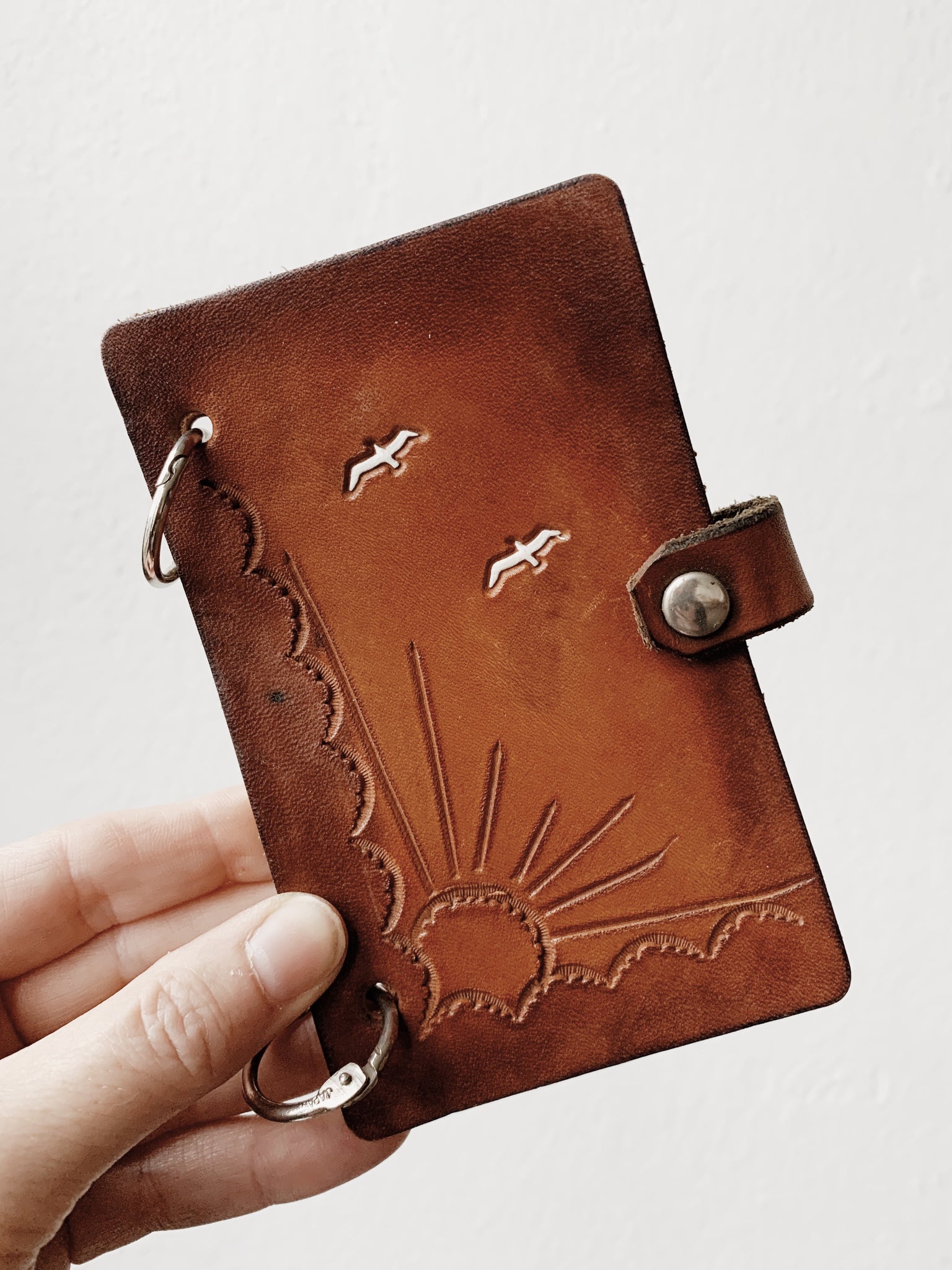 small vintage embossed leather binder with snap closure and heavy duty clasp rings for holding paper. Cute!