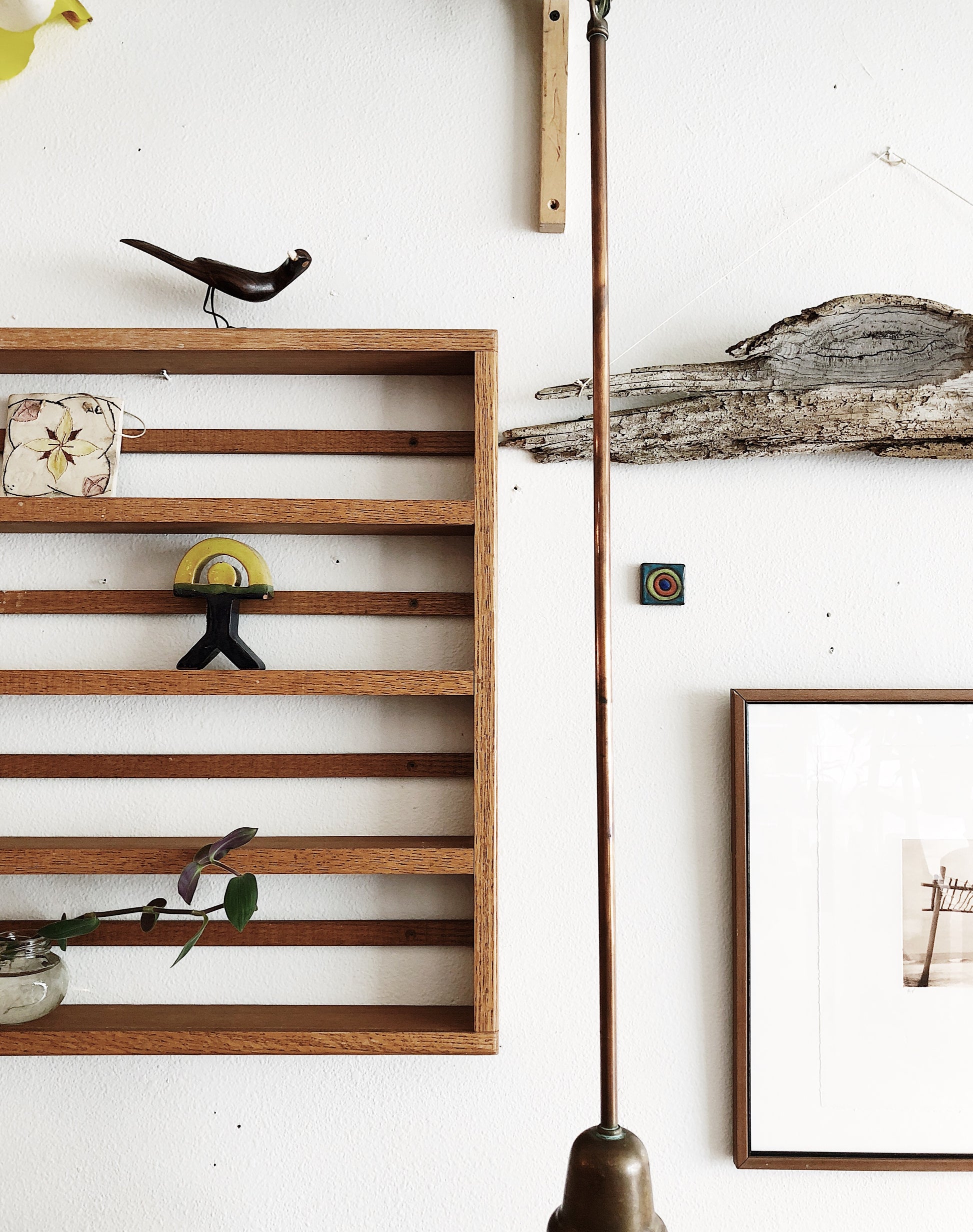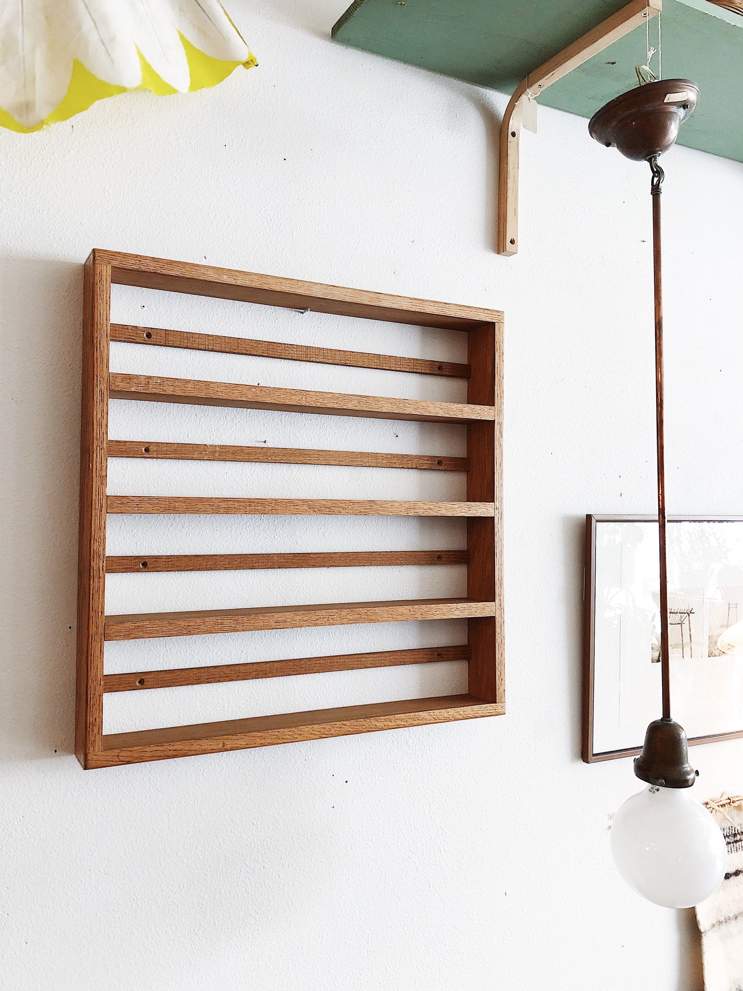 Solid wood spice or display shelf with perfectly sized cubbies for spices or apothecary jars