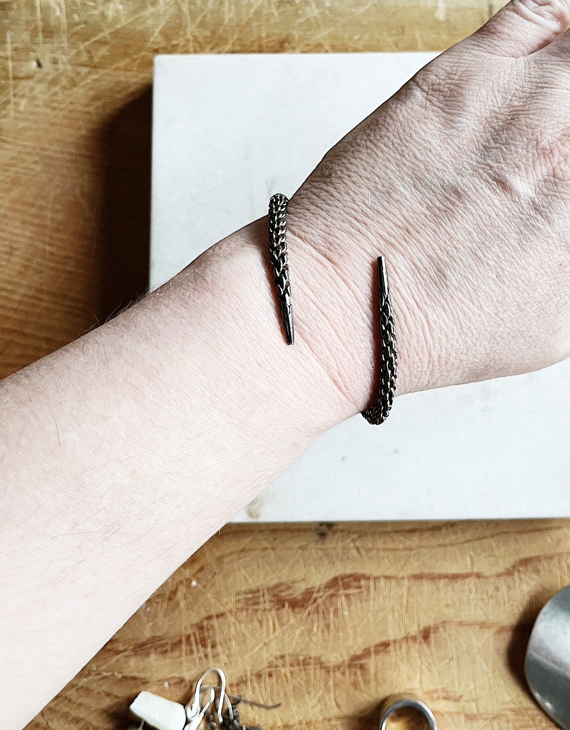 Textural sterling silver coiled snake modernist cuff. Adjustable