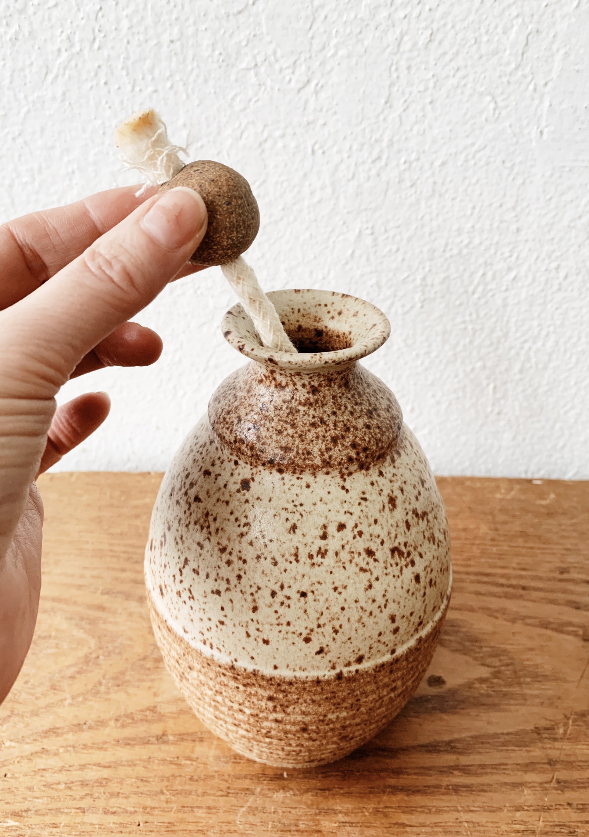 Lovely little stoneware oil lamp ready to be used. Just needs lamp oil