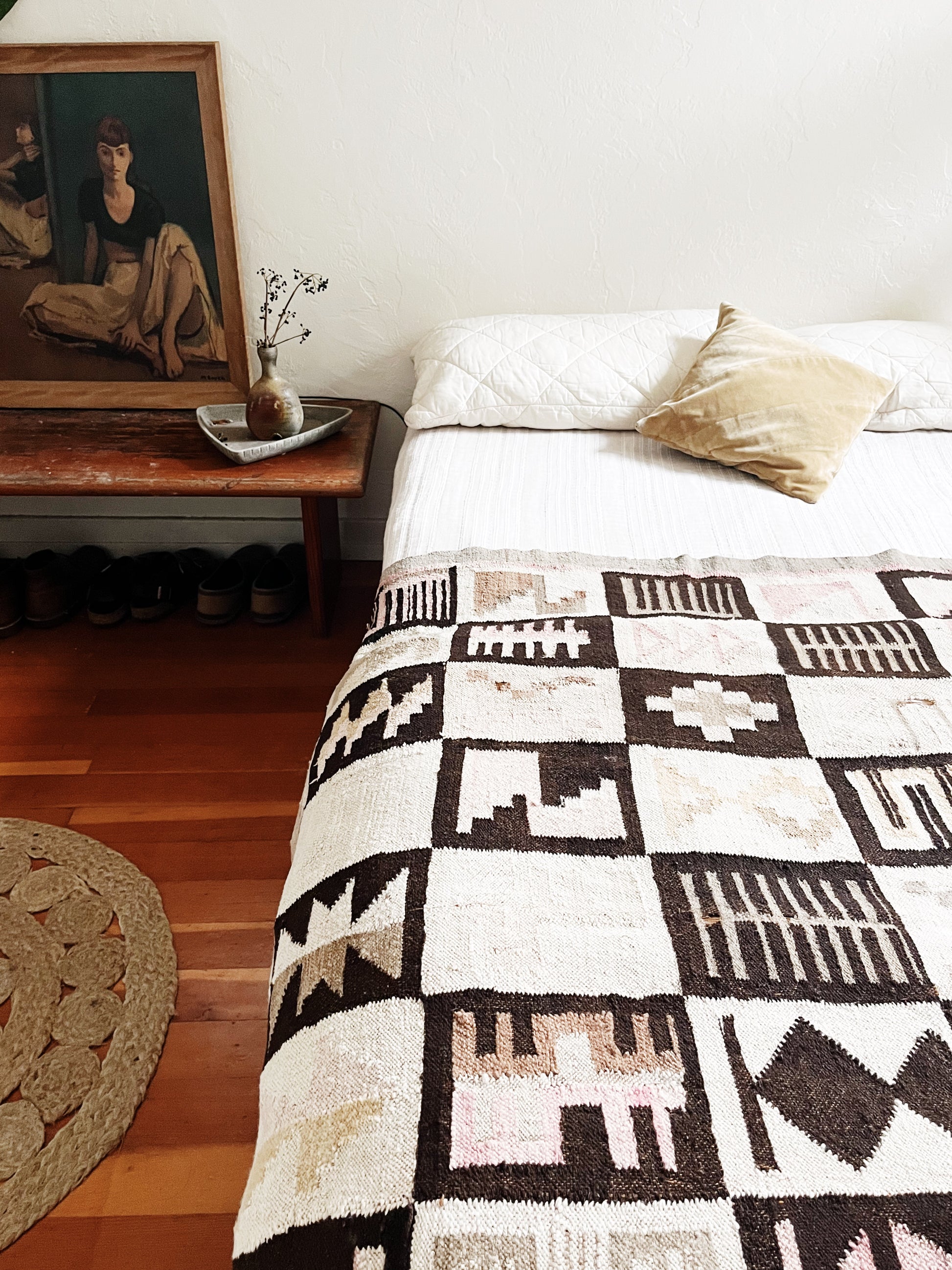 hang this as art or use on a bed, on a lightly traveled floor with a rug pad