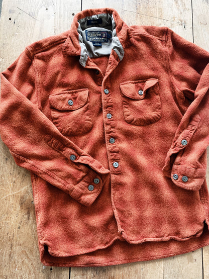 Felted wool Pendleton in a sunset plaid of rust and deep terra. Size xs women’s or for a kiddo