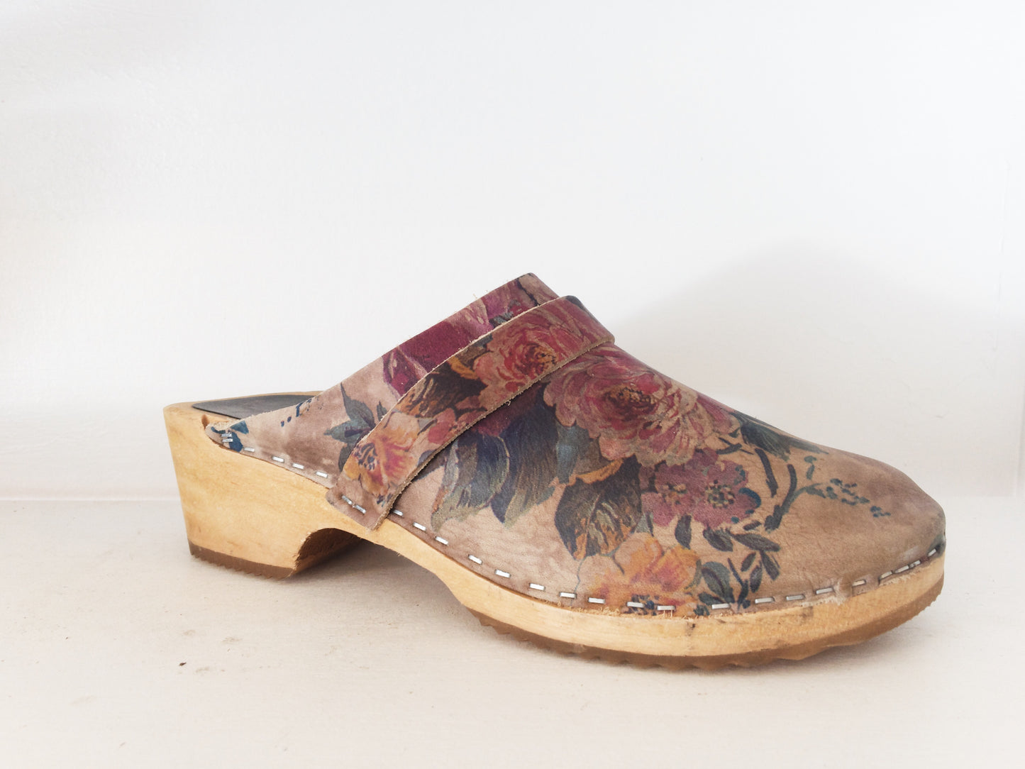 Lovely faded roses pattern on these. The rubber soles are in excellent condition. A lot of like left in these beauties.