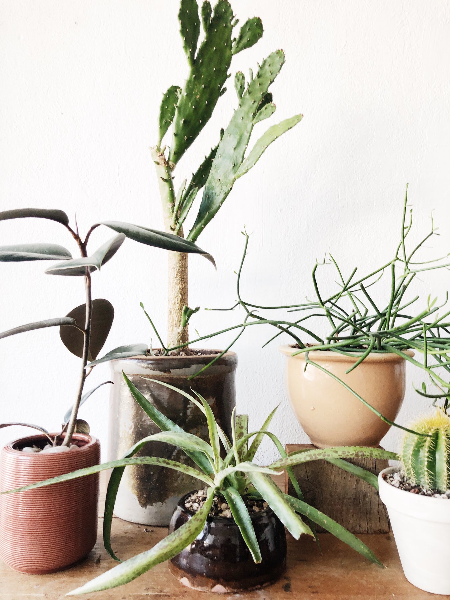 Tall Paddle Cactus in Salt Crock