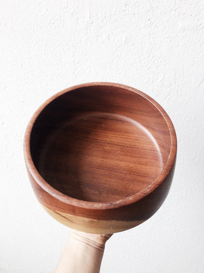 Beautiful wood mid century fruit bowl. Love the lighter grain patch and tapered shape