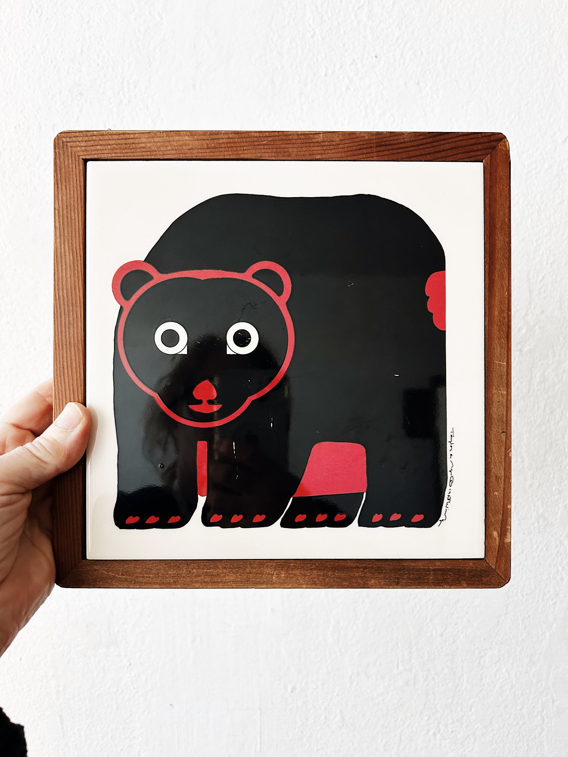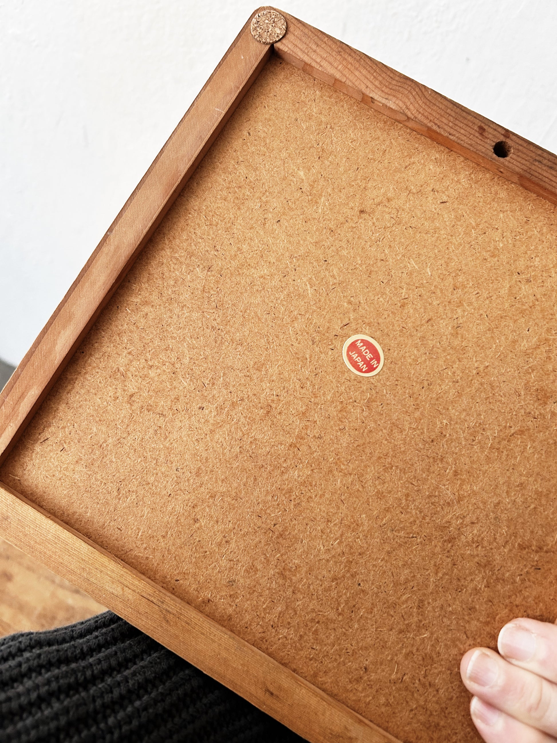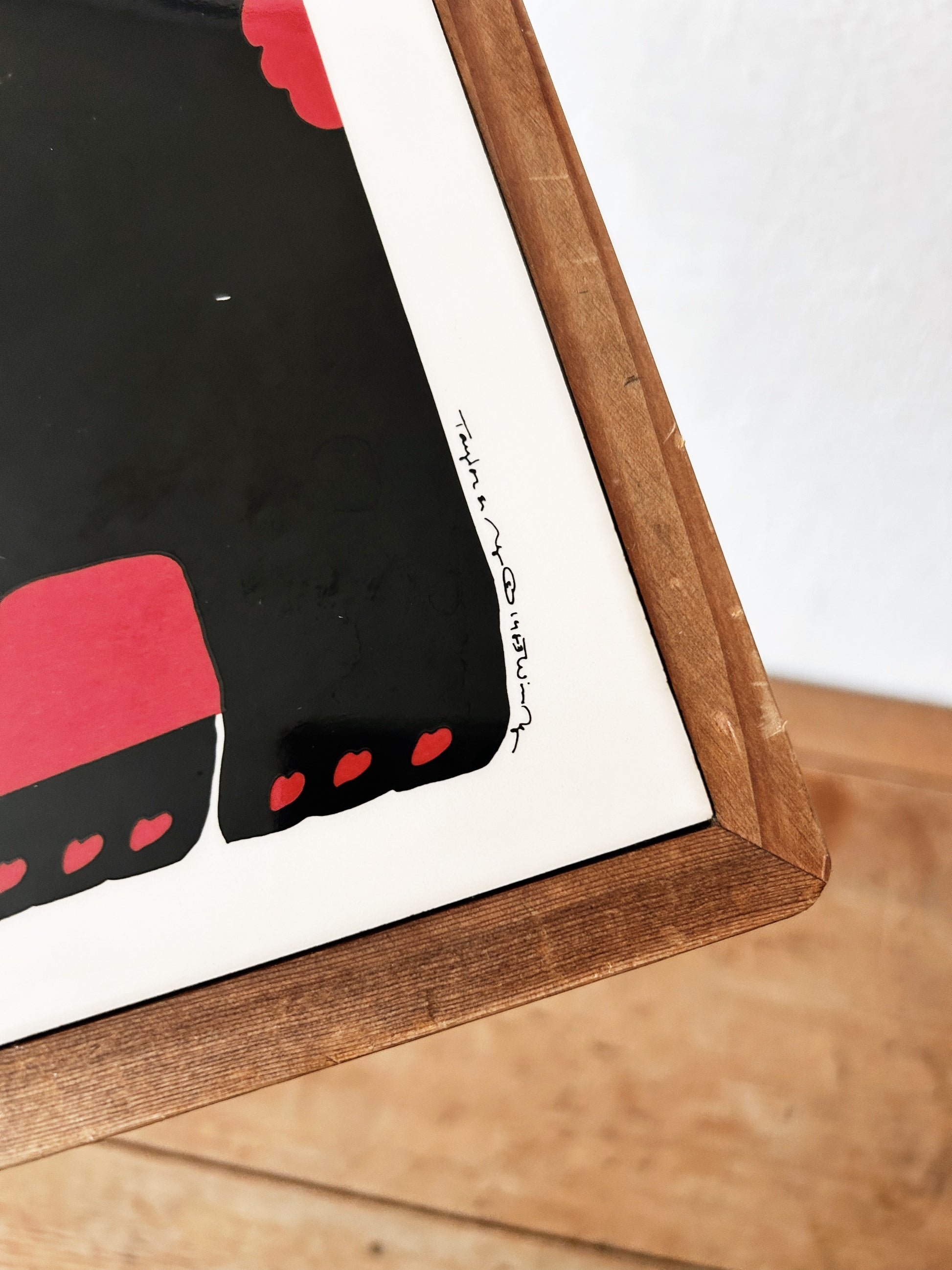 Iconic graphic artists Taylor and Ng trivet. Made in Japan. Ceramic framed in wood with cork padding.