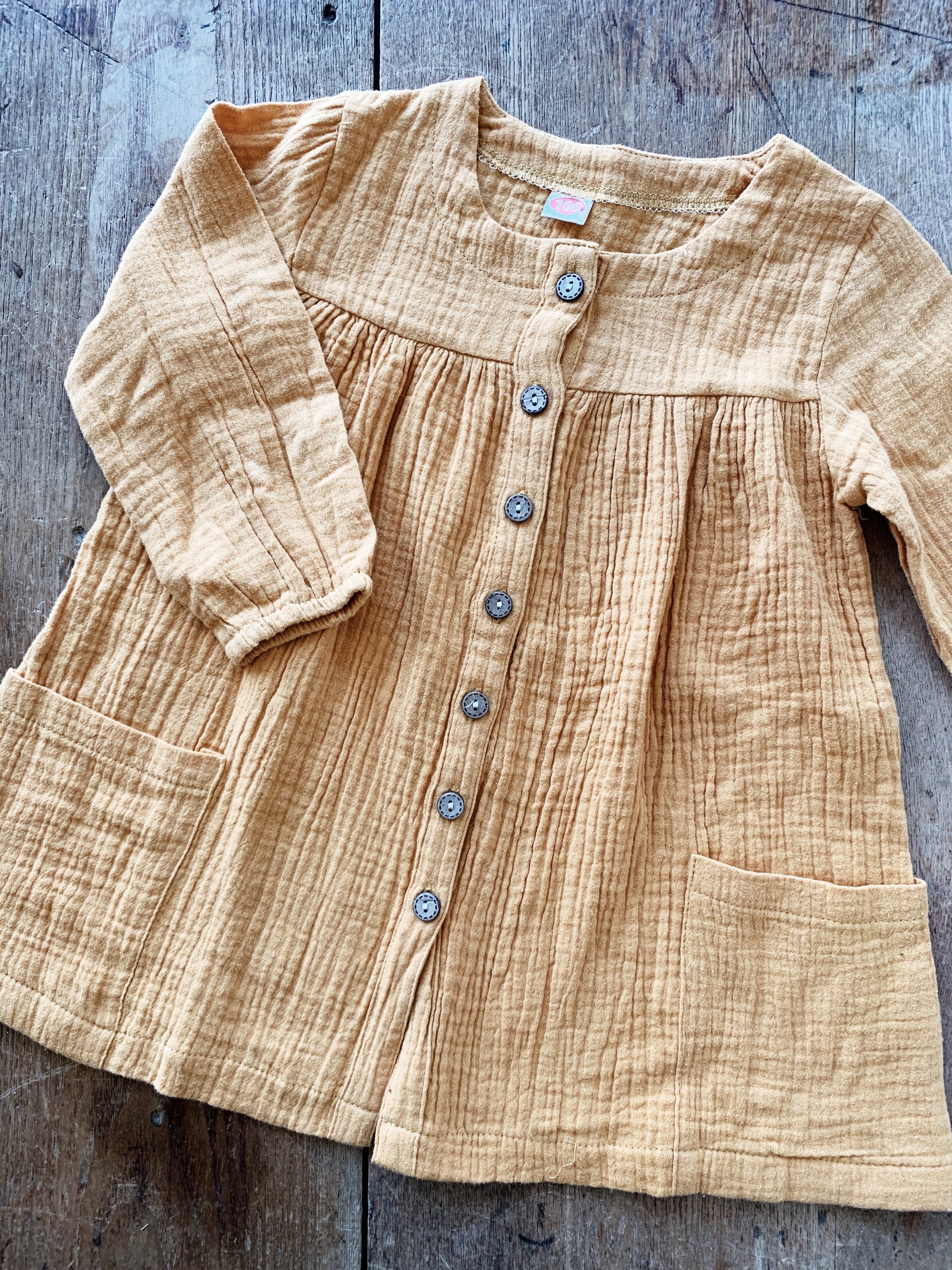Apricot cotton gauze dress or tunic with pockets. Super soft and in excellent condition. Tagged a size 100 which is equivalent to a size 3/4.